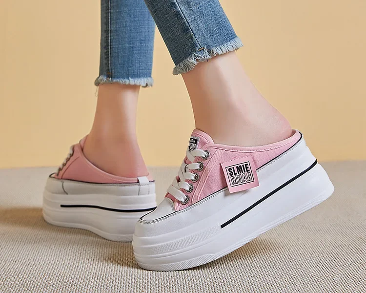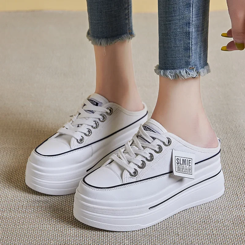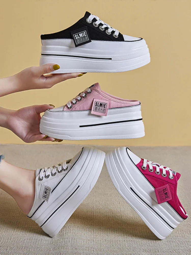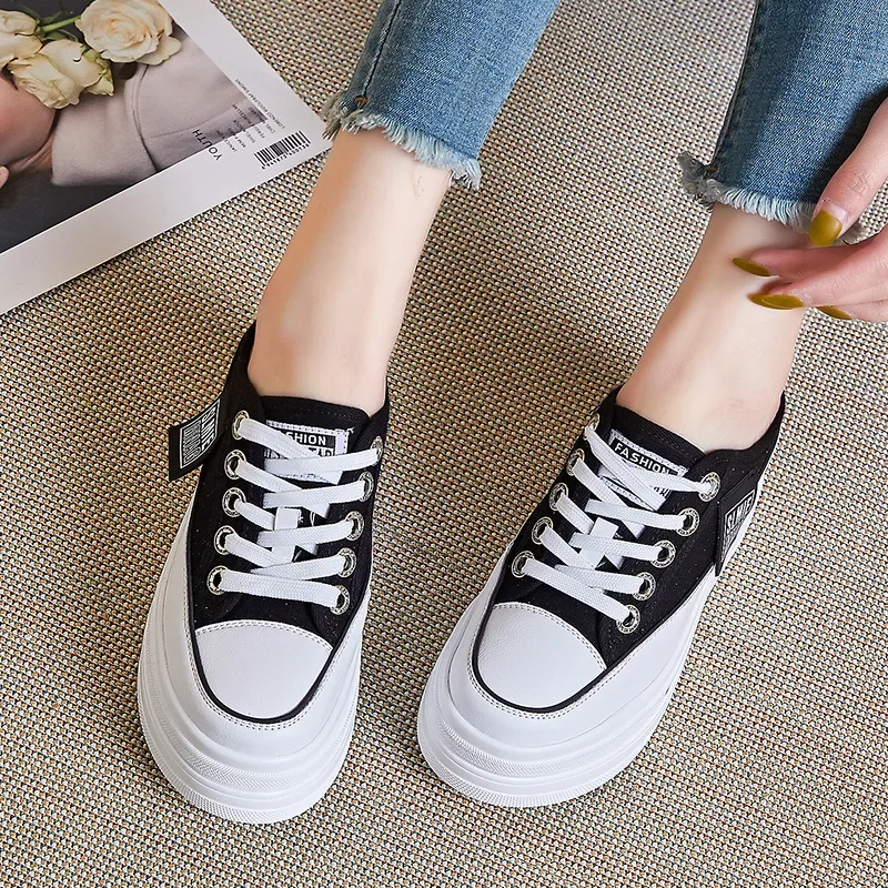 New Fashion Summer Sports Slippers Womens Vulcanized Shoes Flat Thick Bottom Widening Casual Breathable Sandals Slippers Middle
