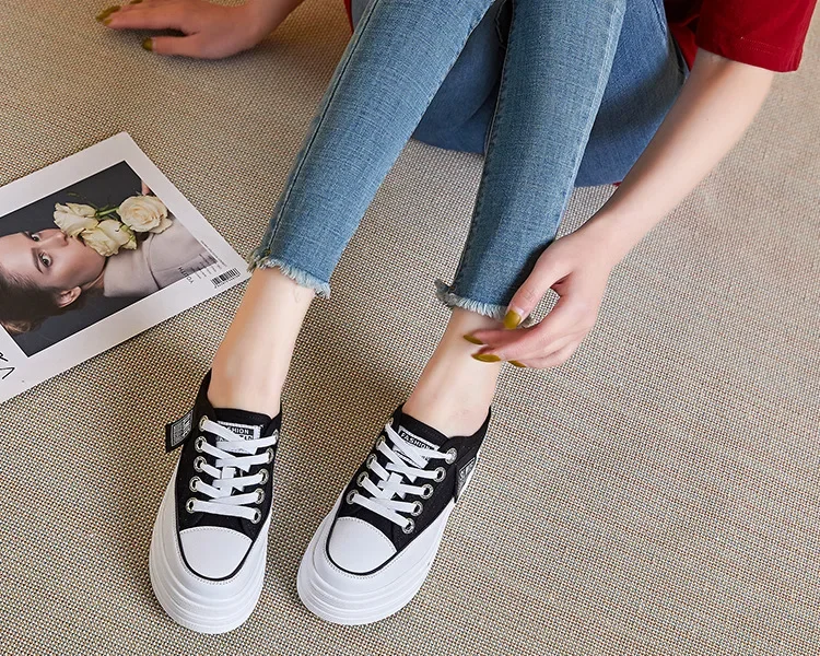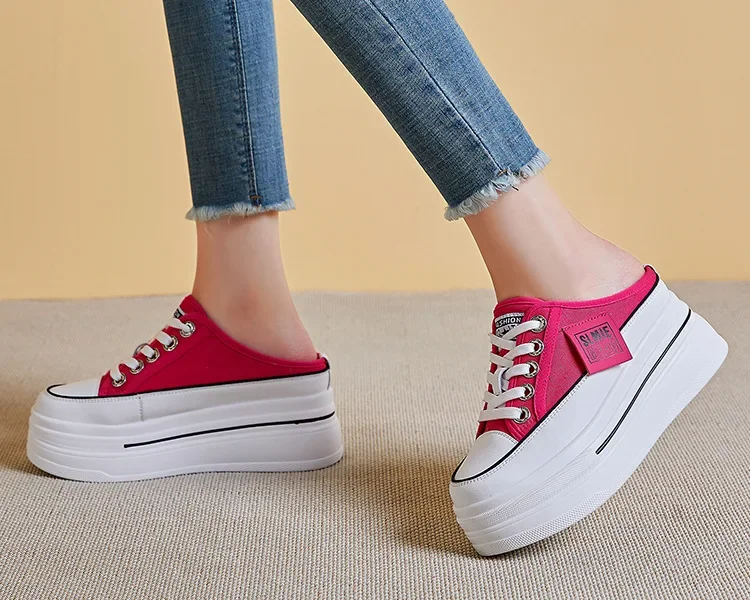 New Fashion Summer Sports Slippers Womens Vulcanized Shoes Flat Thick Bottom Widening Casual Breathable Sandals Slippers Middle