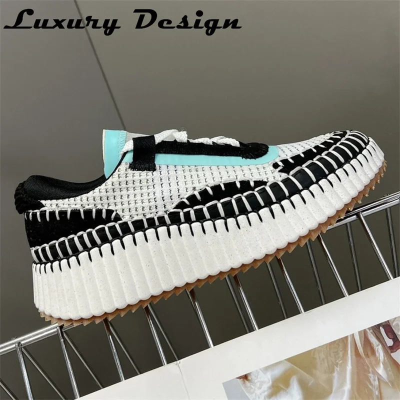 New Hand Stitched Designer Women Sports Shoes Luxury High Quality Casual Shoes Platform Mixed Colors Knitted Fashion Sneakers