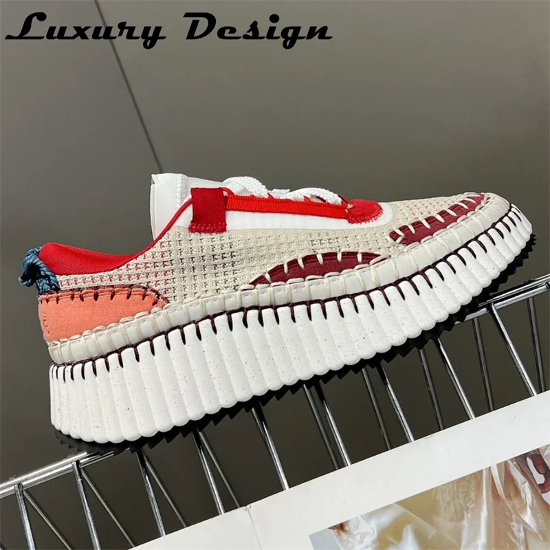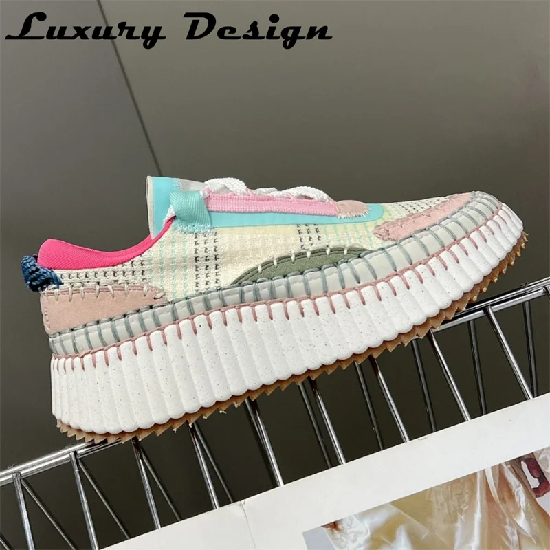 New Hand Stitched Designer Women Sports Shoes Luxury High Quality Casual Shoes Platform Mixed Colors Knitted Fashion Sneakers