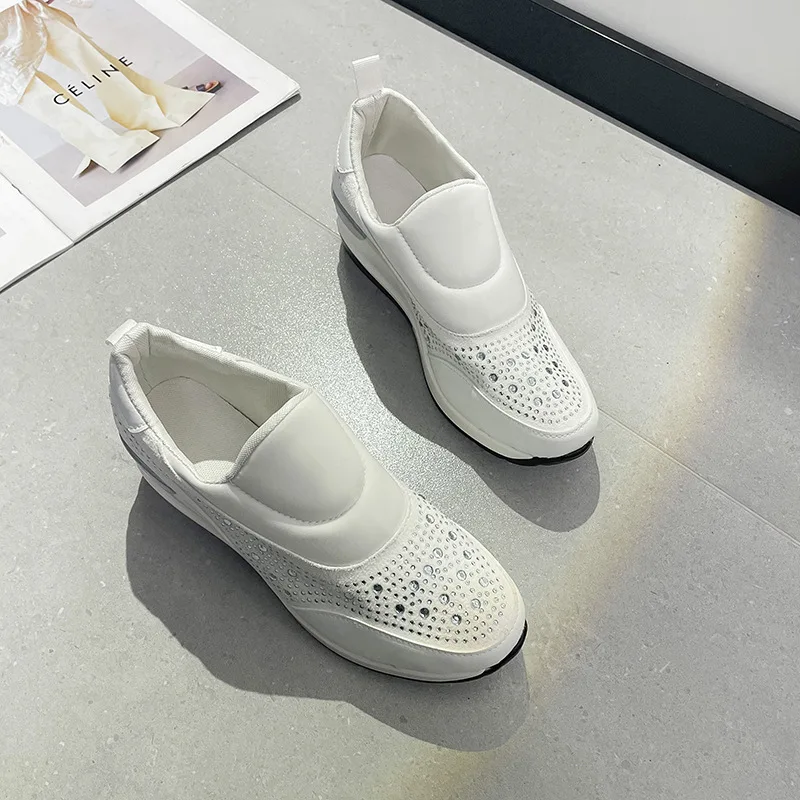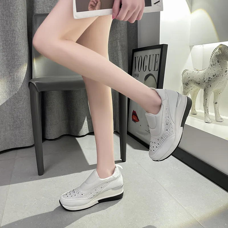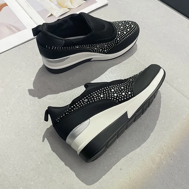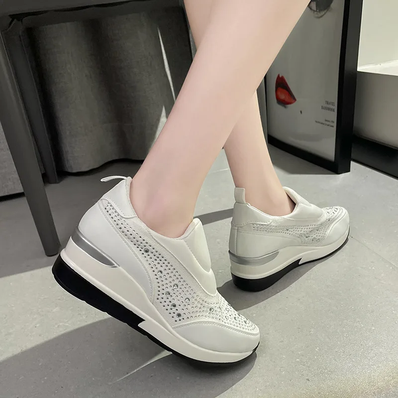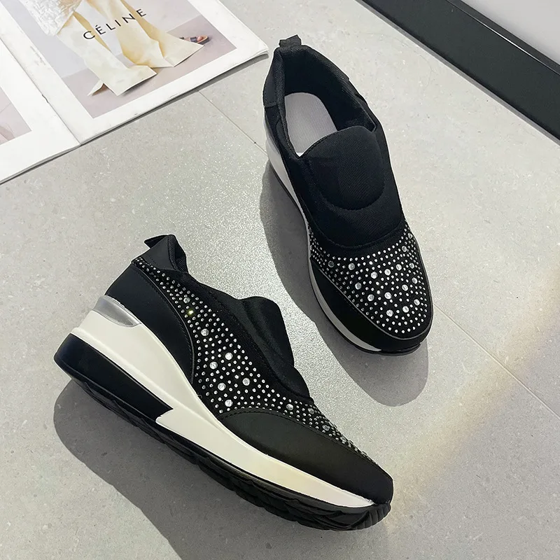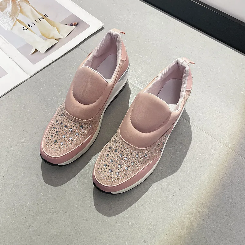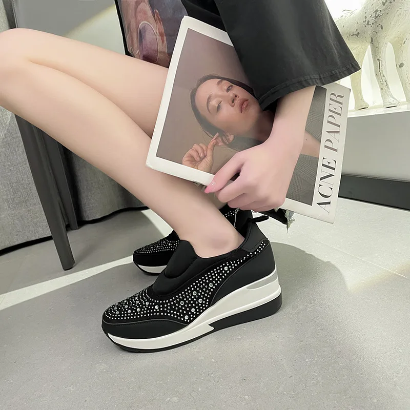 New large size women's thick soled wedges glitter set foot breathable sequin single shoes light height increase sneakers C1282