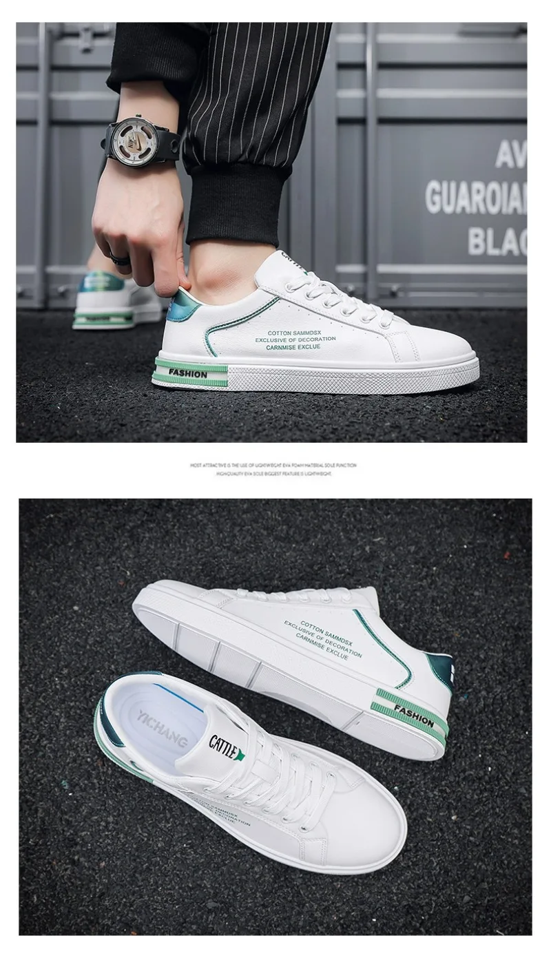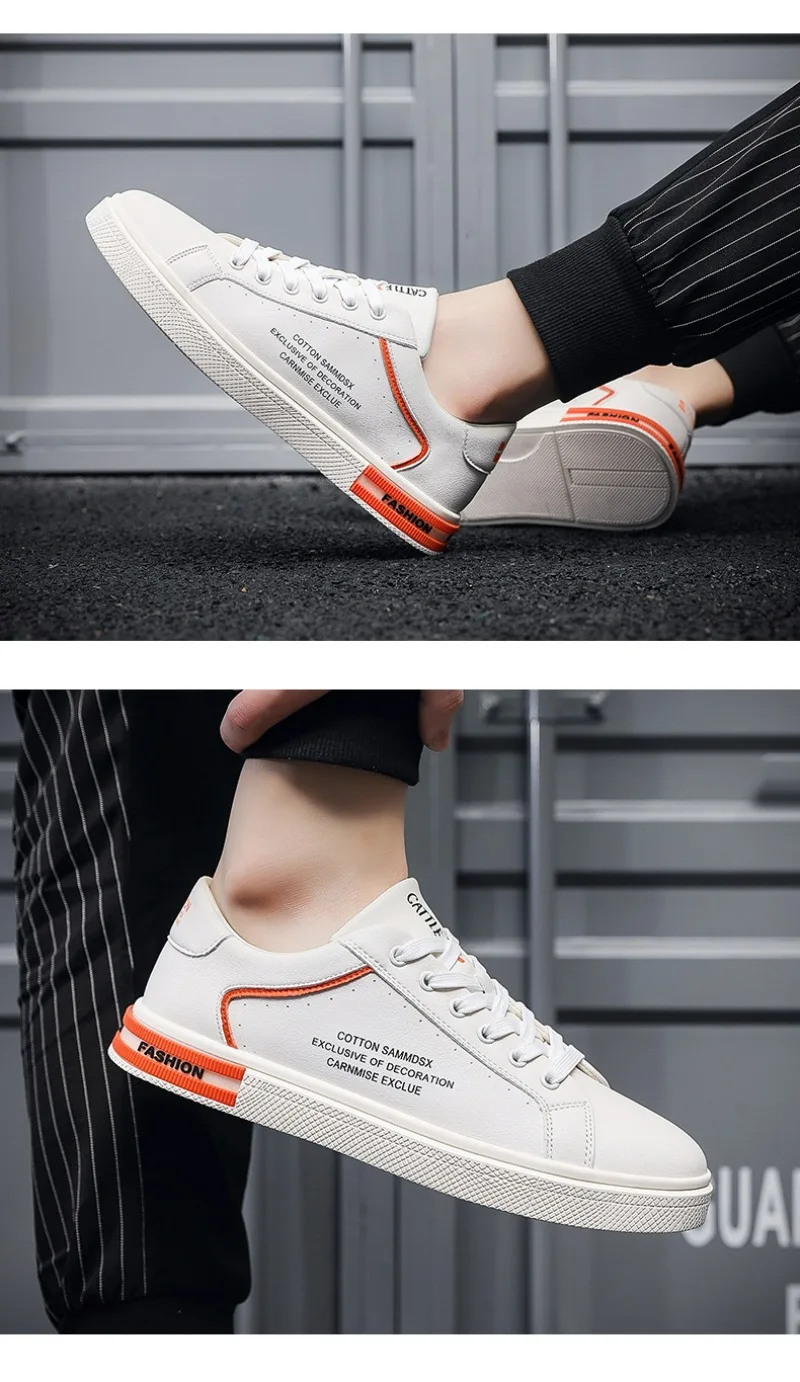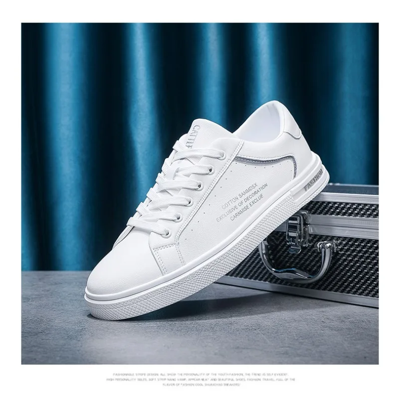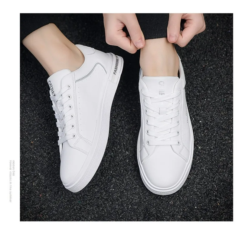 New Men's Shoes Fashion White Leather Sneakers Mens Flat Breathable Casual Shoes Vulcanized Shoe Male Lace-up Casual Sport Shoes