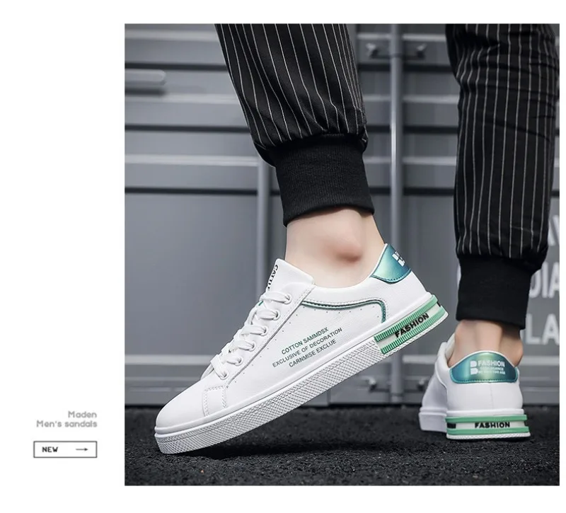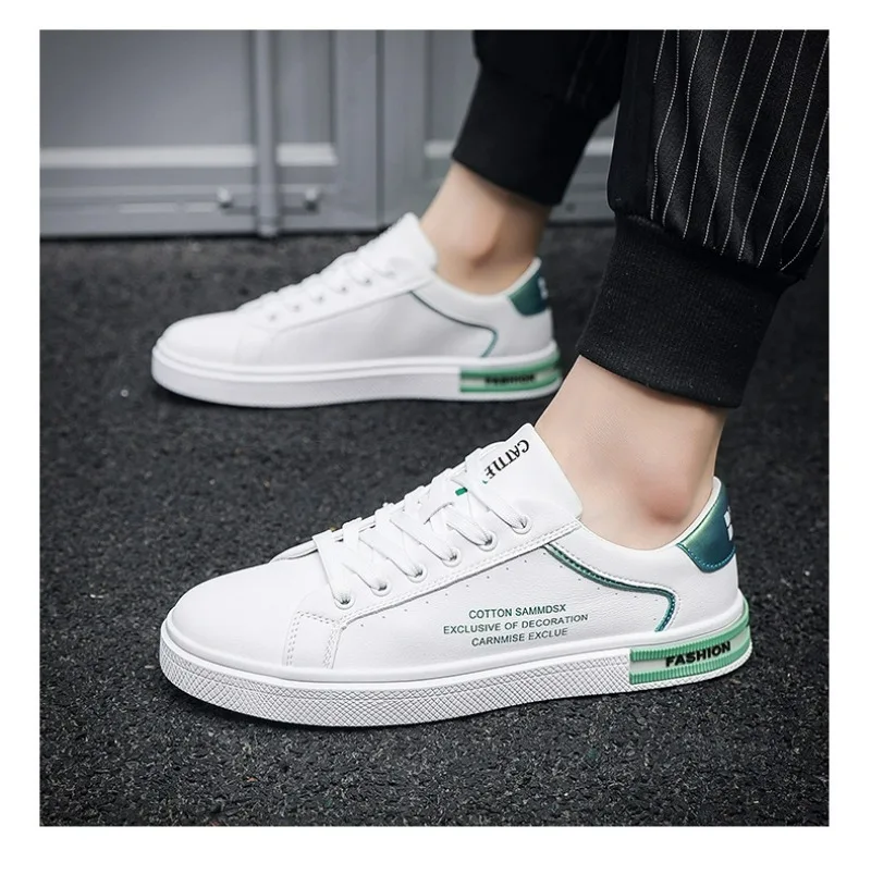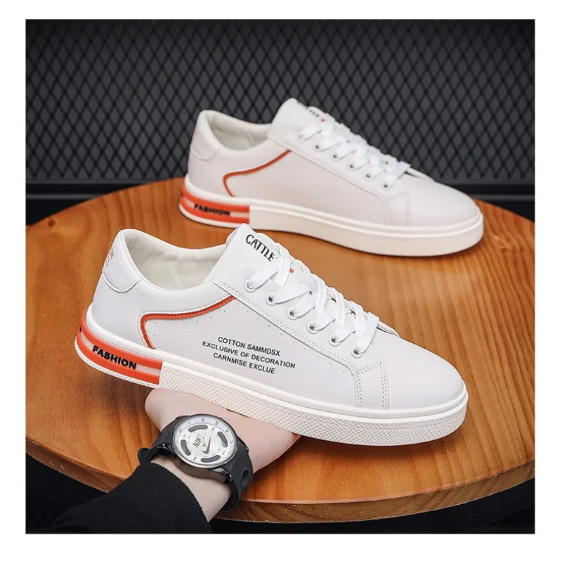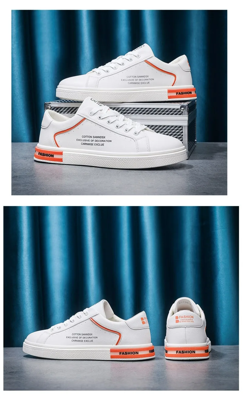 New Men's Shoes Fashion White Leather Sneakers Mens Flat Breathable Casual Shoes Vulcanized Shoe Male Lace-up Casual Sport Shoes