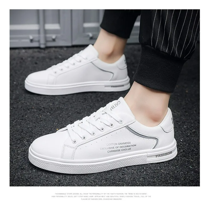 New Men's Shoes Fashion White Leather Sneakers Mens Flat Breathable Casual Shoes Vulcanized Shoe Male Lace-up Casual Sport Shoes
