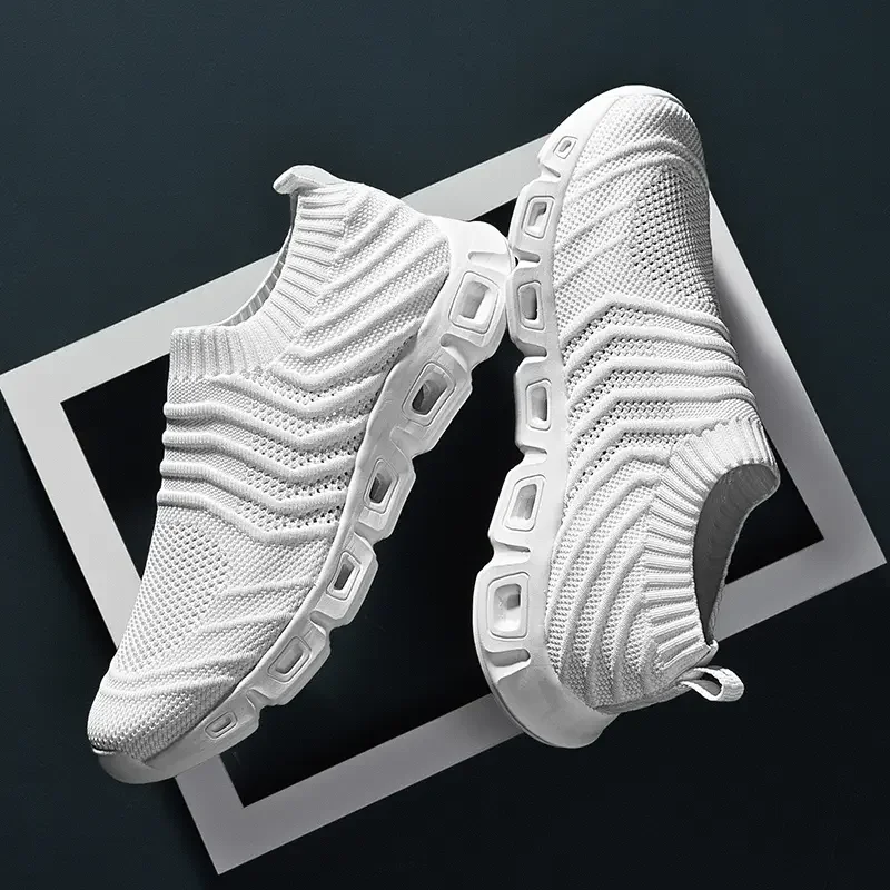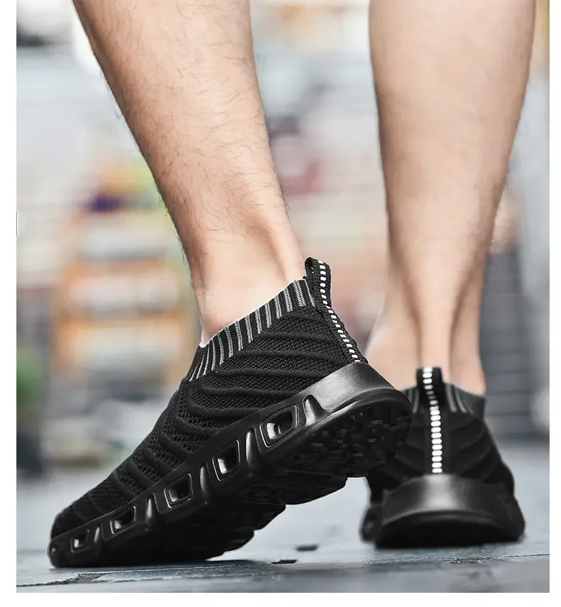 New Men's Summer Mesh Hollow Out Sneakers Soft Bottom Non Slip Breathable Big Size Light Walking Shoes Socks Shoes Walking Shoes