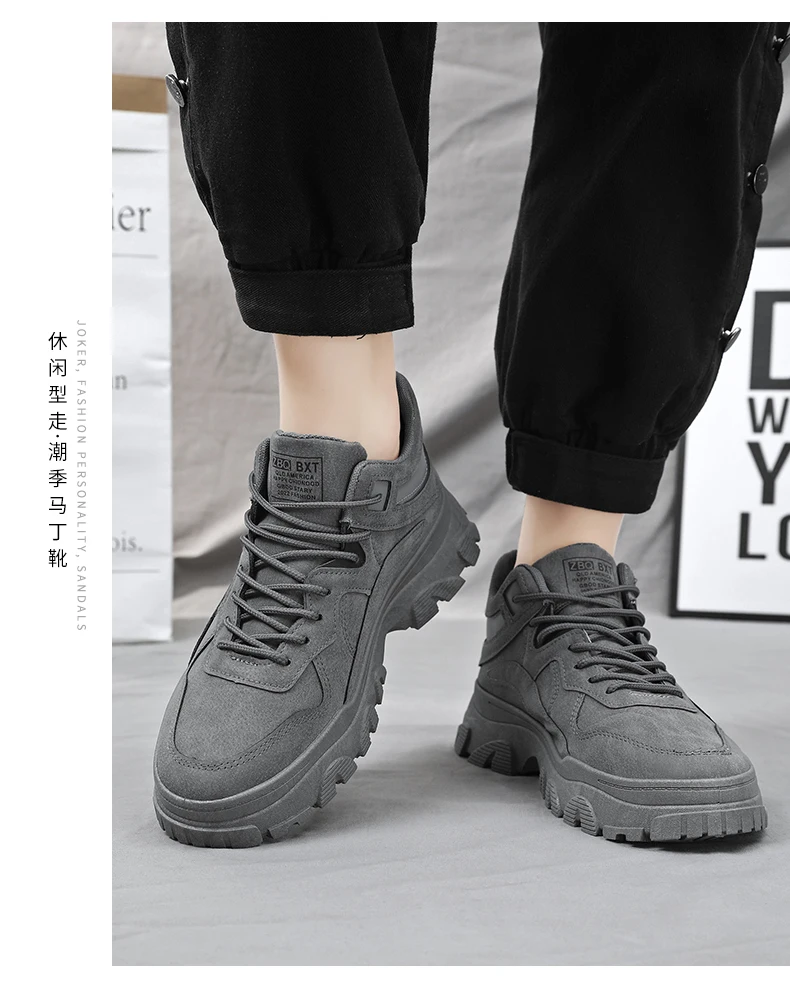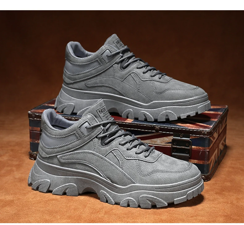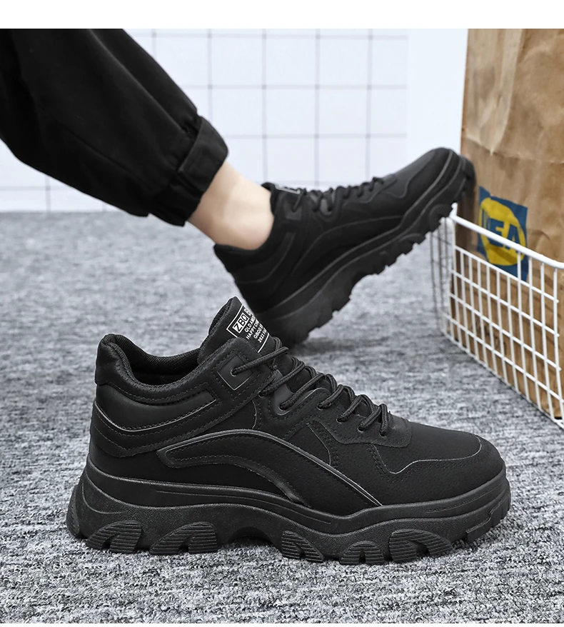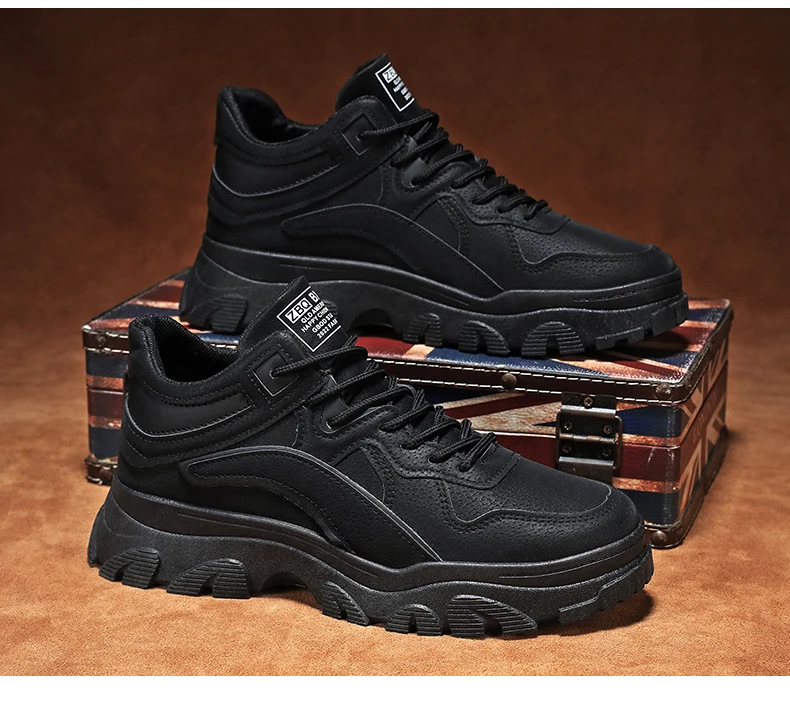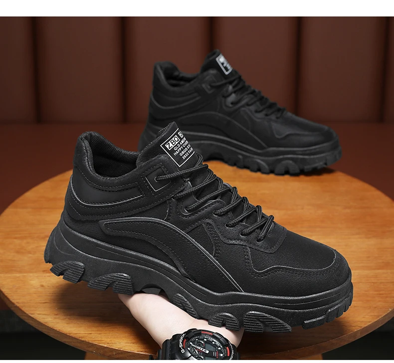 New men's waterproof casual sports shoes high top light lace-up solid color student men's shoes walking loafers