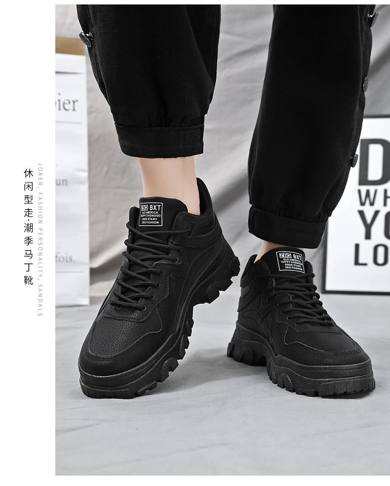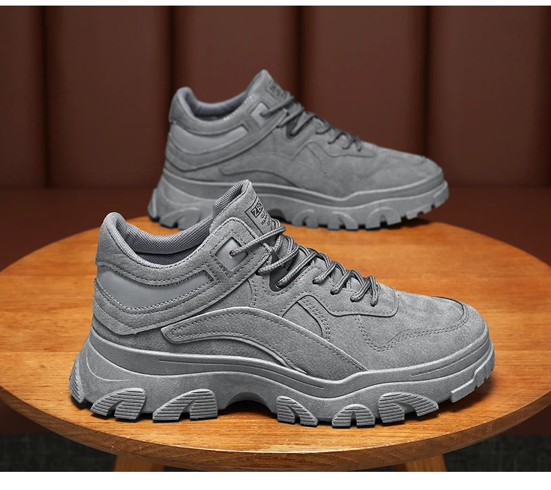 New men's waterproof casual sports shoes high top light lace-up solid color student men's shoes walking loafers