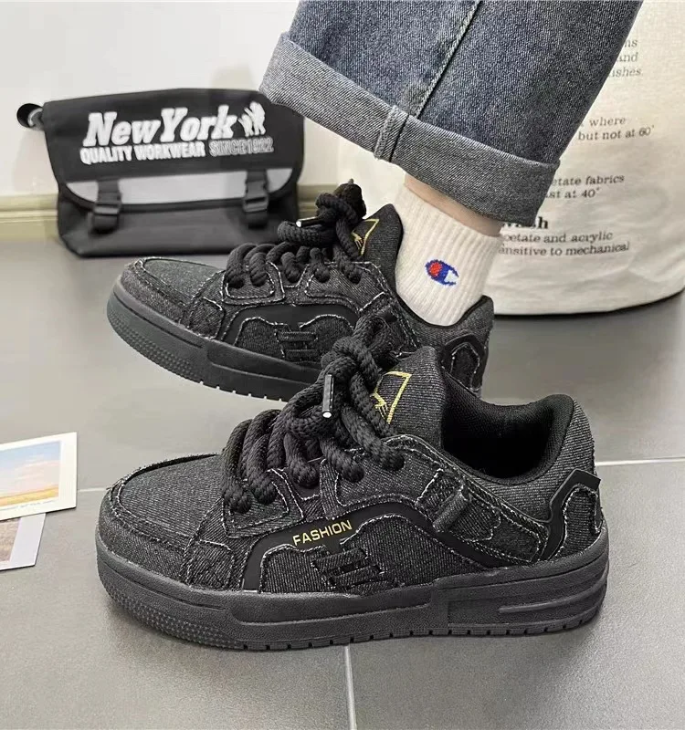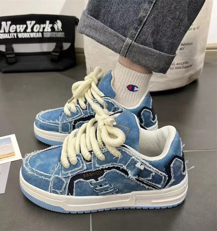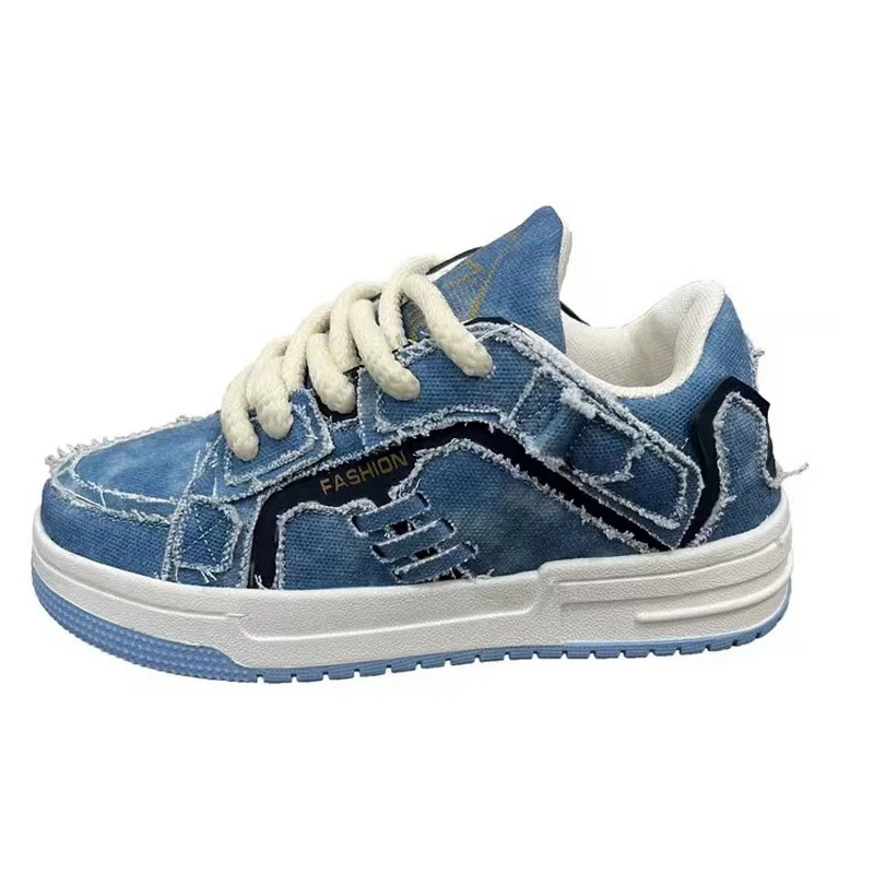 New Retro Men's And Women's Denim Shoes Breathable Adults & Kids Sneakers Fashion Thick-Sole Sports Casual Size 36-44