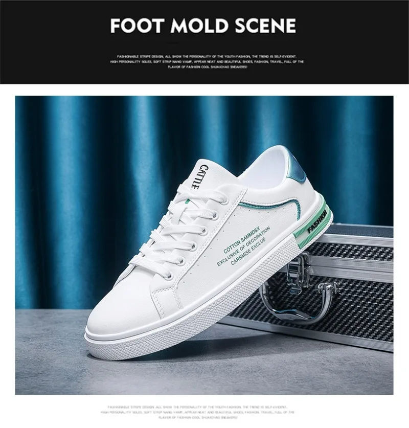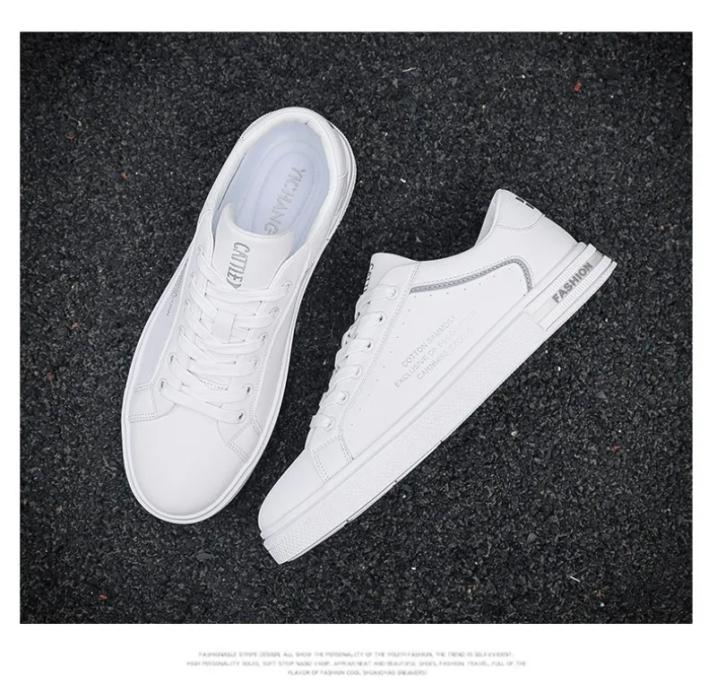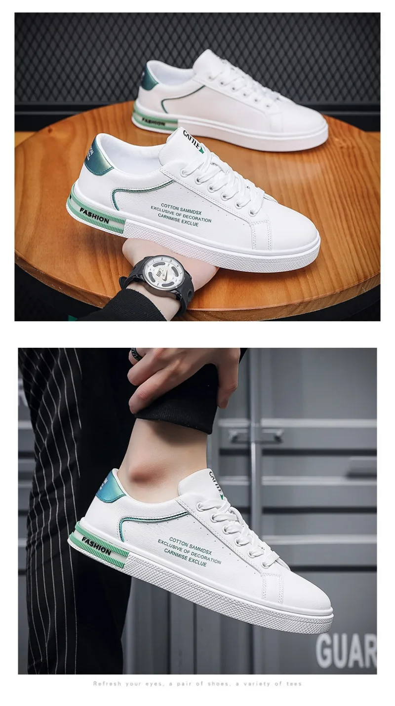 New White Leather Sneakers Breathable Men Flats Lace-up Fashion Vulcanized Shoe 2024 Sports Casual Shoes for Men Tenis Masculino