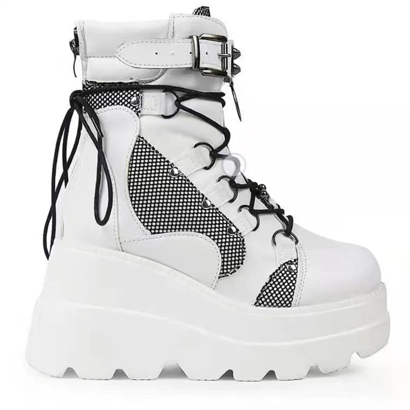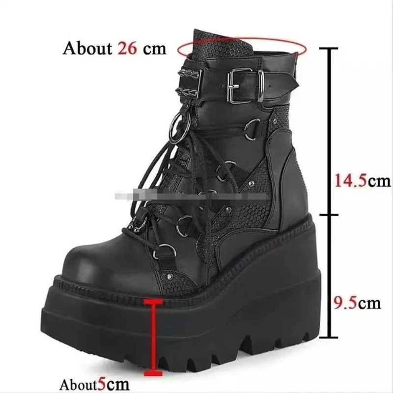 New Women Punk Gothic Motorcycle Boots 2023 Platform Chunky High Heel Ankle Boot Ladies Cool Wedge Woman Black Female Shoes