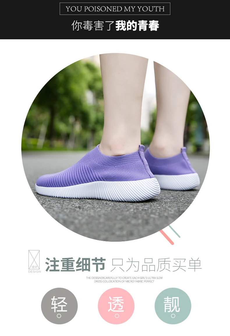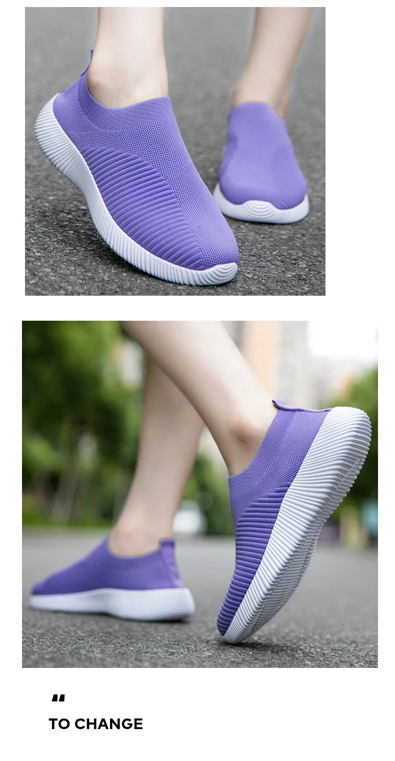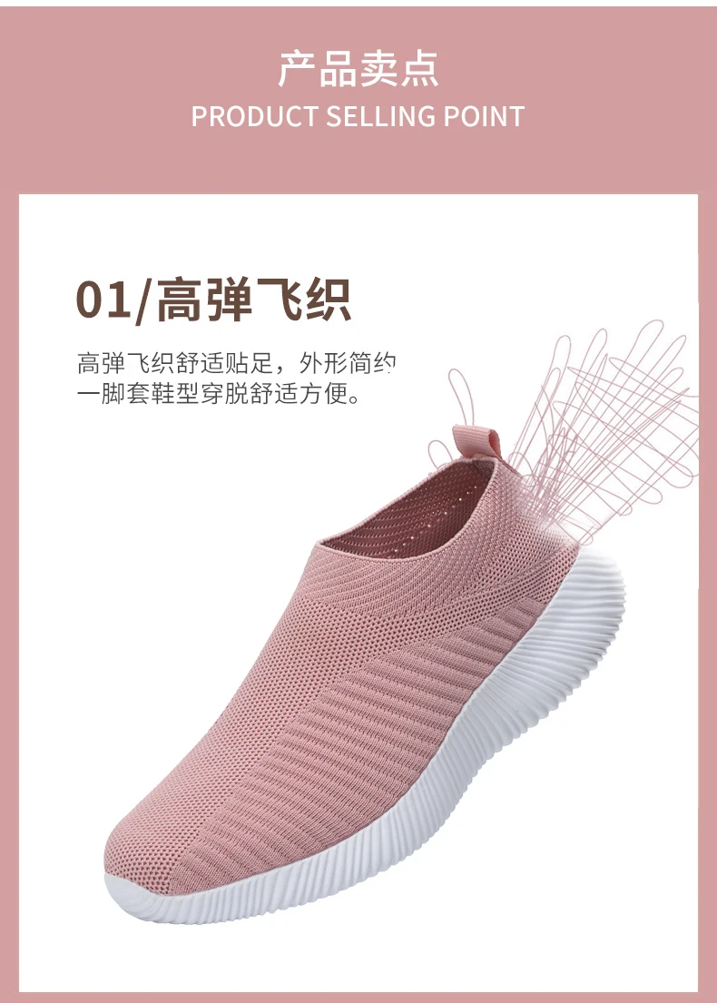 New Women's Sneakers Breathable Women Vulcanized Shoes Slip on Flats Light Board Sports Shoes Mesh Socks Shoes Spring Main Push