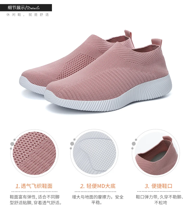 New Women's Sneakers Breathable Women Vulcanized Shoes Slip on Flats Light Board Sports Shoes Mesh Socks Shoes Spring Main Push