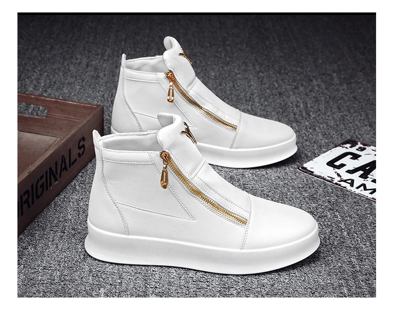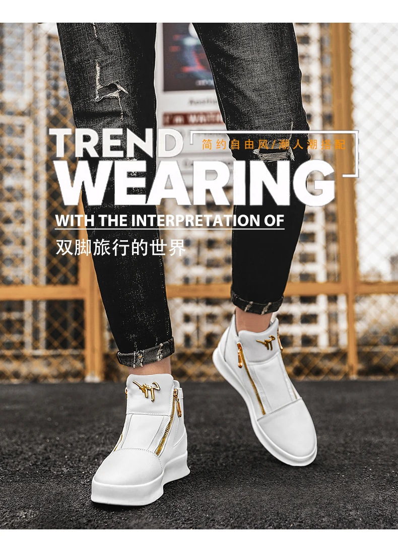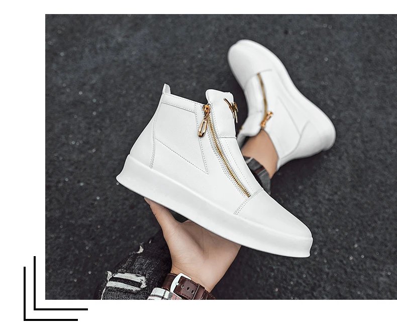 New Zipper Designer Sneakers Men Luxury Platform Shoes Casual High Top Sneakers Men Trendy Shoes Fashion Men's Leather Sneakers