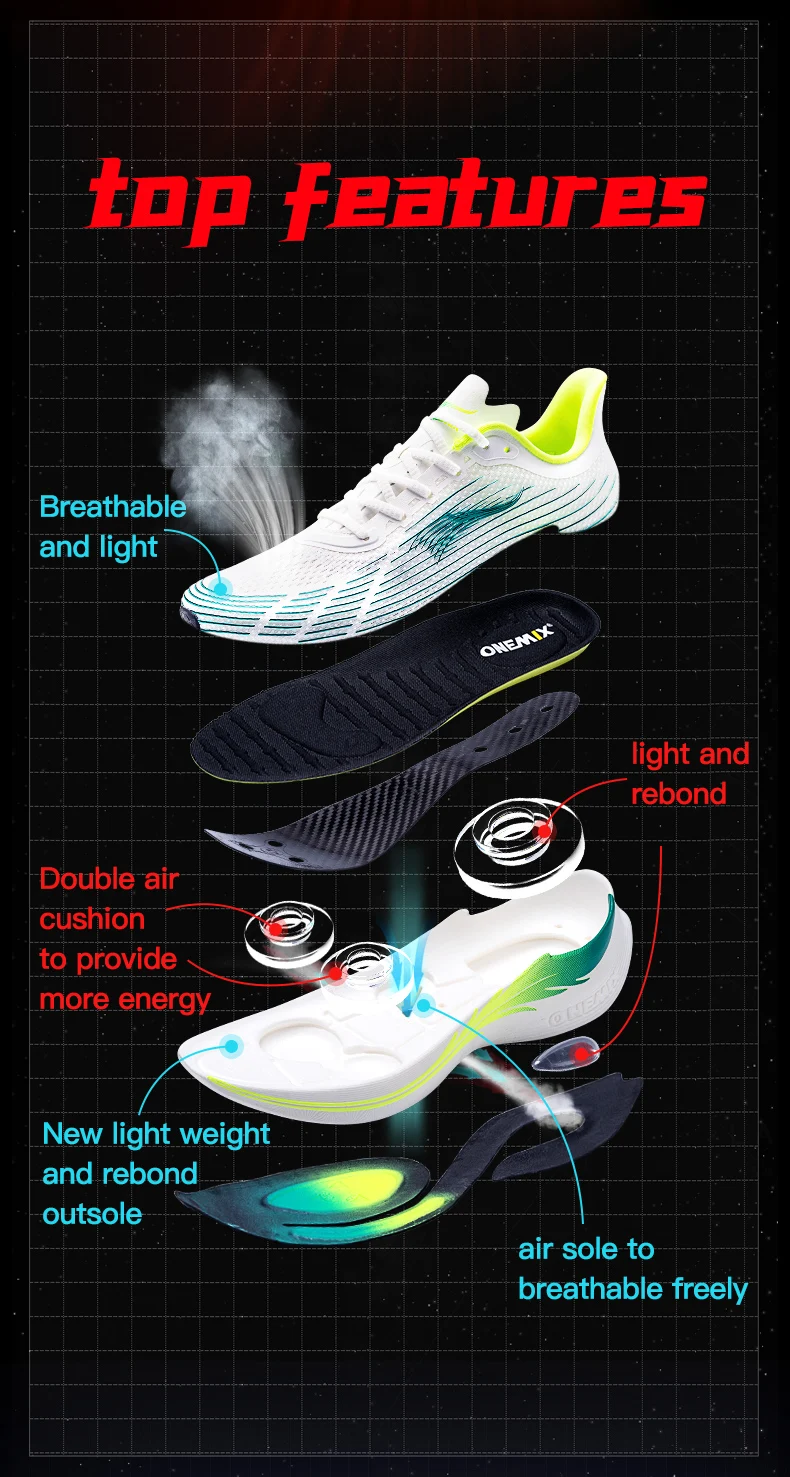 Onemix Carbon plate racing Running Shoes breathable sneaker New Professional Marathon Cushion Sneakers Sports Shoes