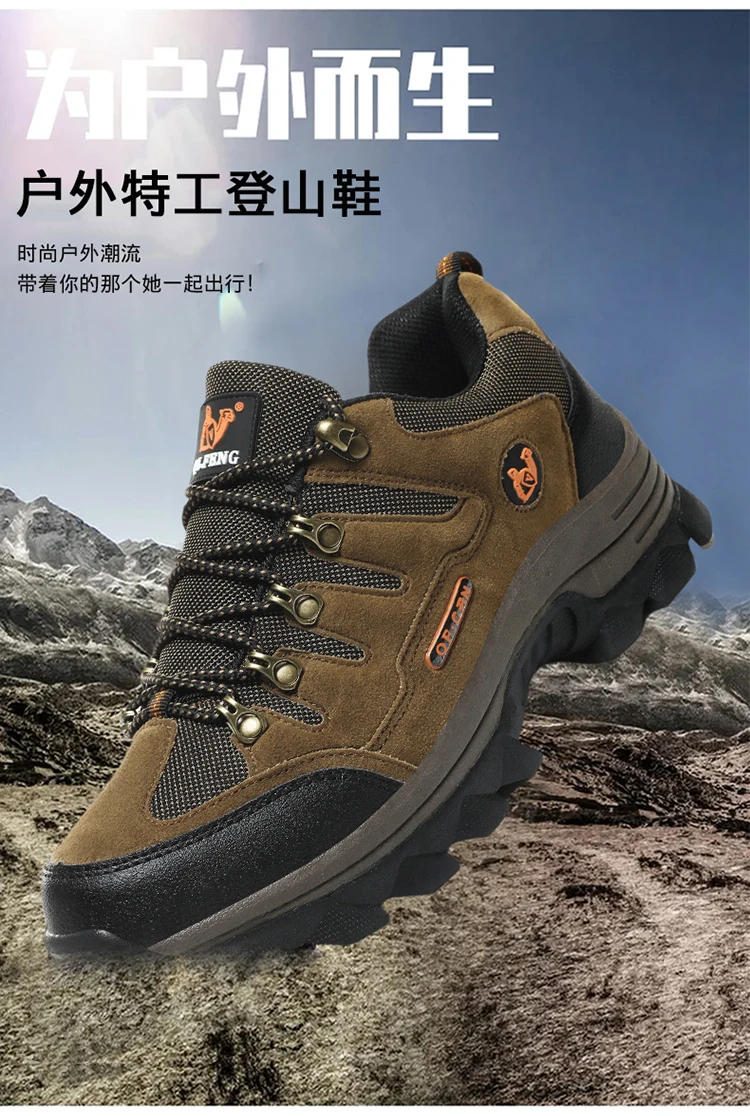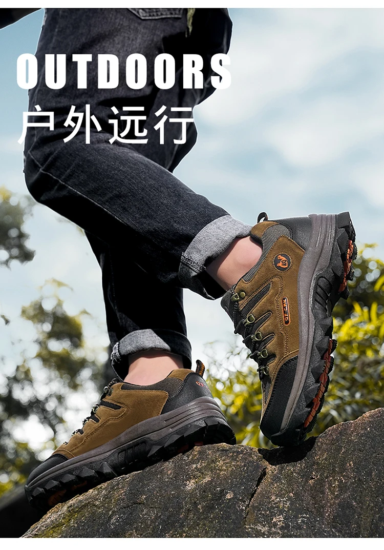 Outdoor Men's Sneaker Autumn Winter Couples Casual Shoes Mountaineering Shoes Men's Leather Walking Shoes Large Footwear
