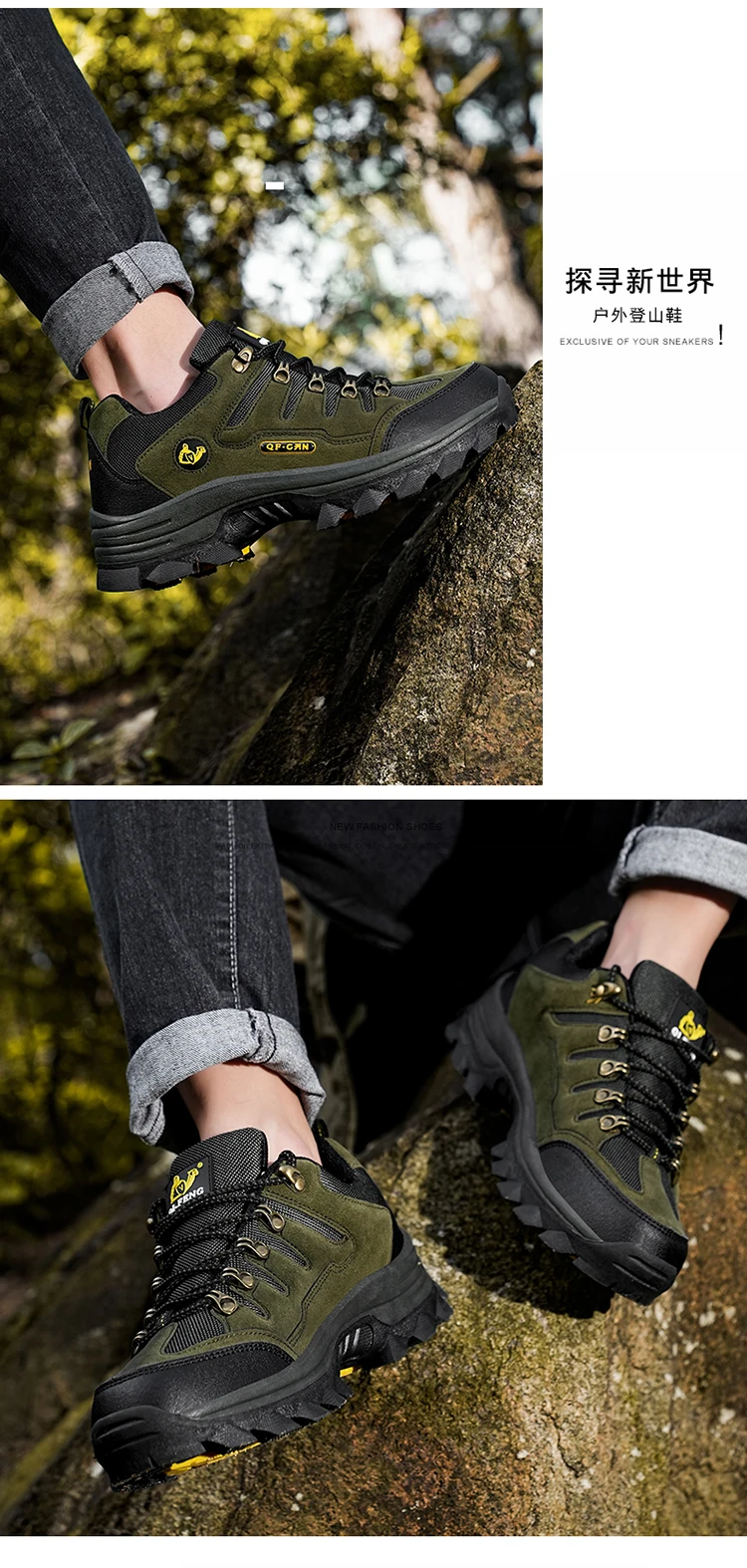 Outdoor Men's Sneaker Autumn Winter Couples Casual Shoes Mountaineering Shoes Men's Leather Walking Shoes Large Footwear