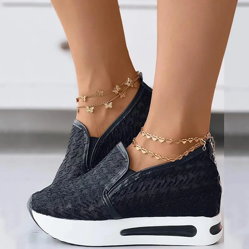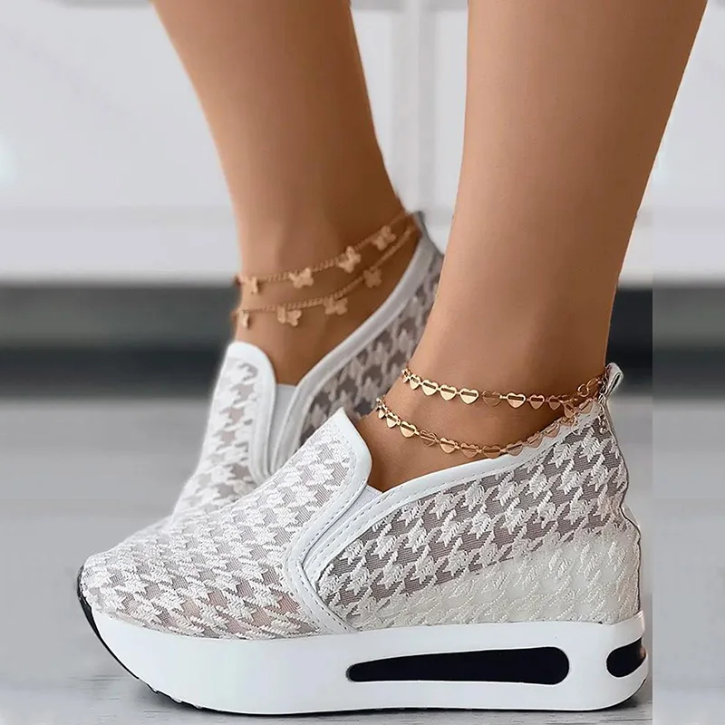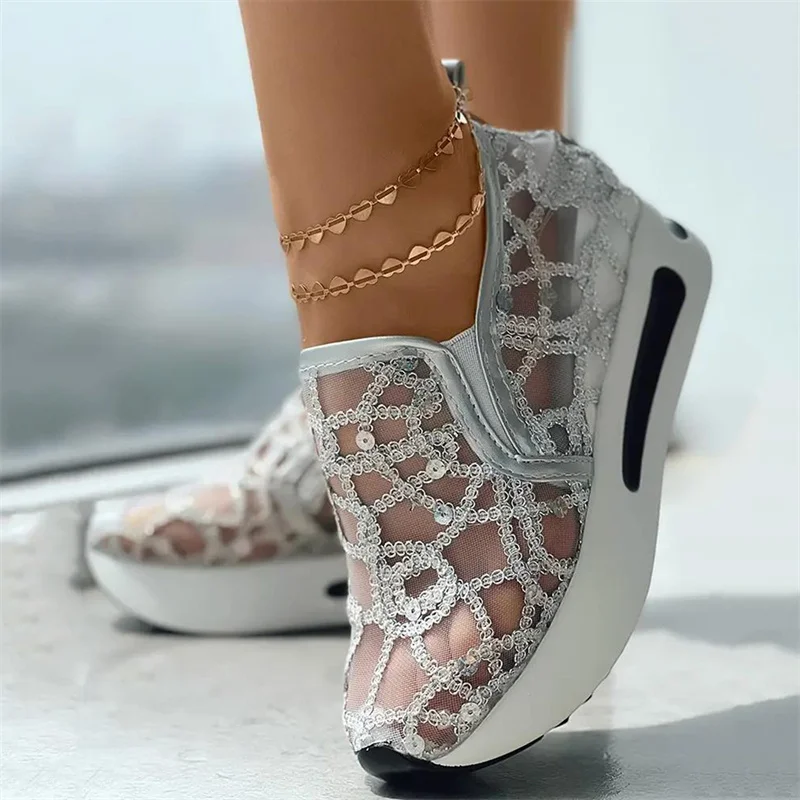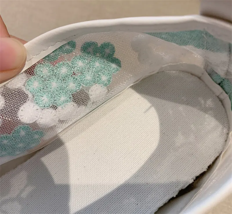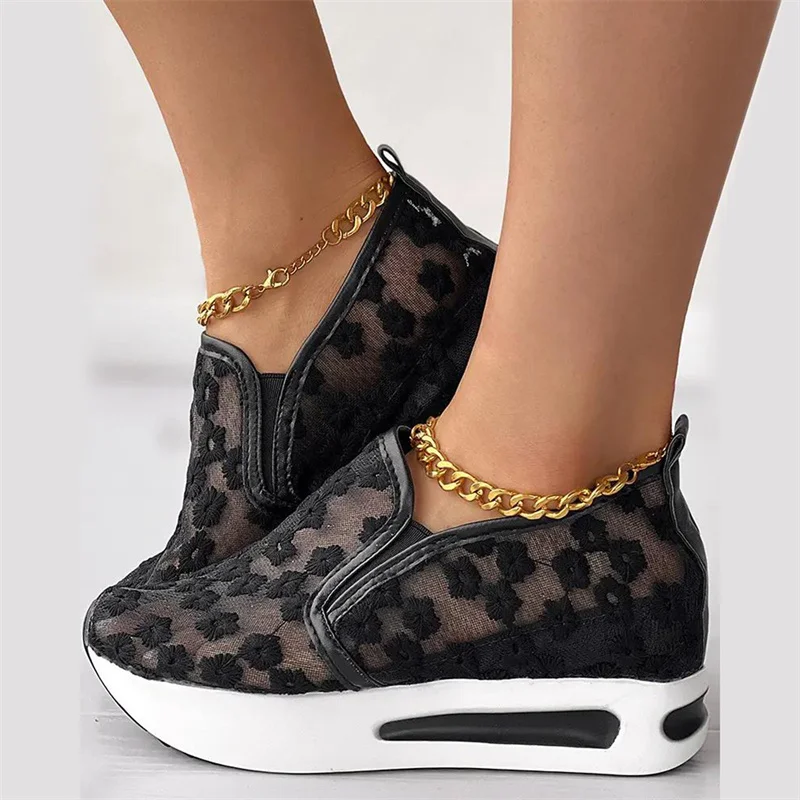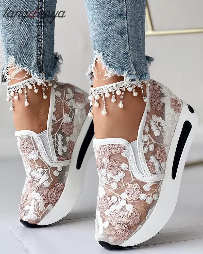 Platform Wedges women's Sneakers Floral Embroidery Mesh Sneakers For Women Slip On Casual Comfy Heeled Shoes Woman white size 42