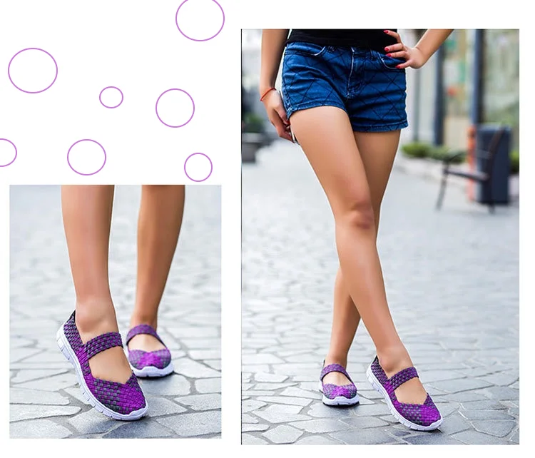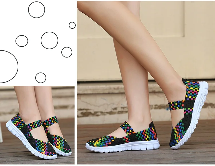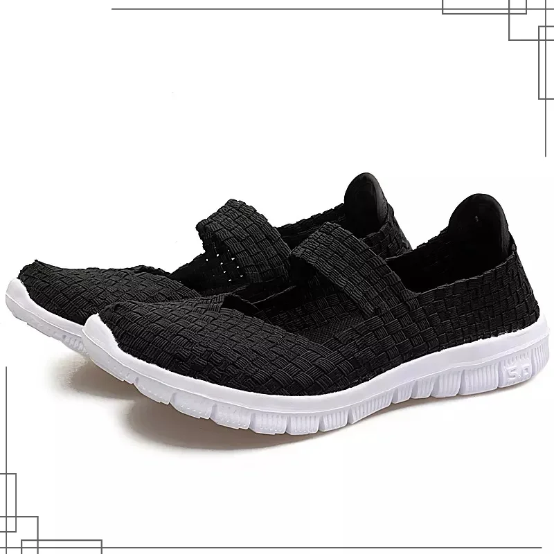 Plus Size Women Flat Shoes 2022 Fashion Elastic Band Weave Shoes Women Comfort Flat Shoes Women Casual Loafers Zapatos De Mujer