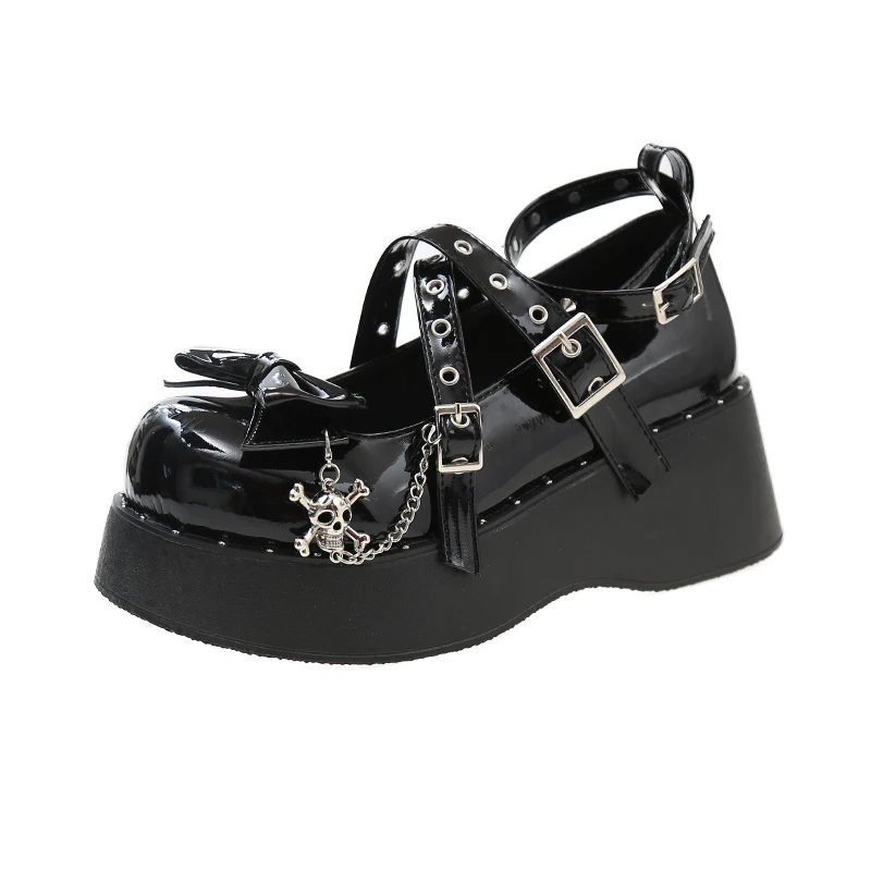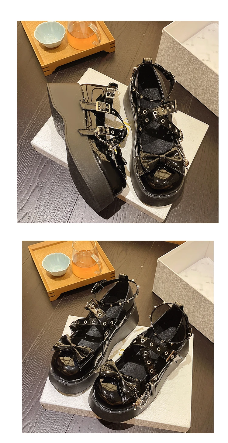 Punk Goth Chunky Platform Pumps Women 2023 Autumn Bowtie Wedges Mary Jane Lolita Shoes Woman Heart Ankle Buckle Black Shoes