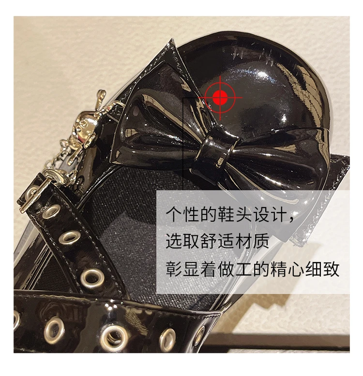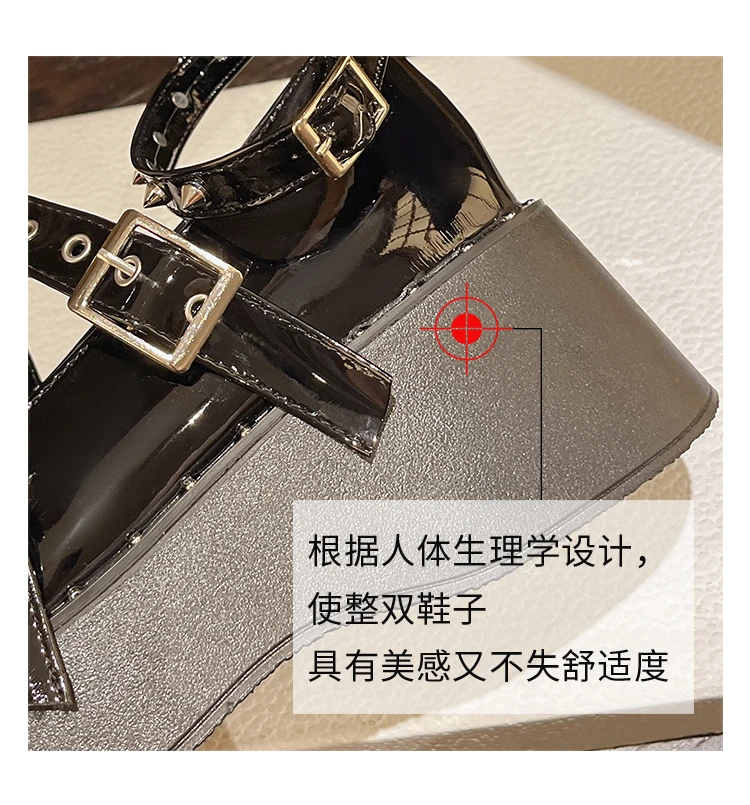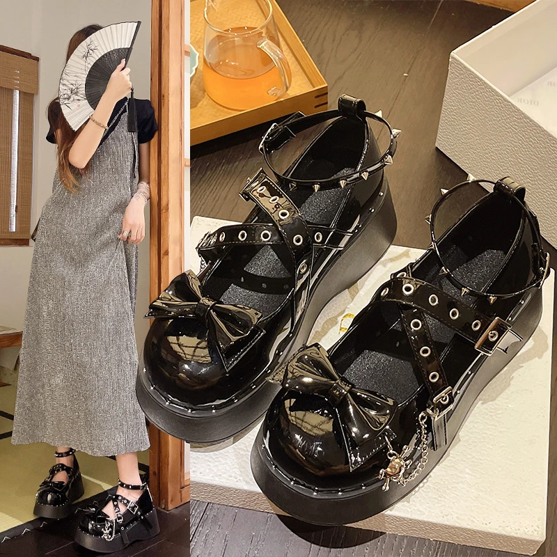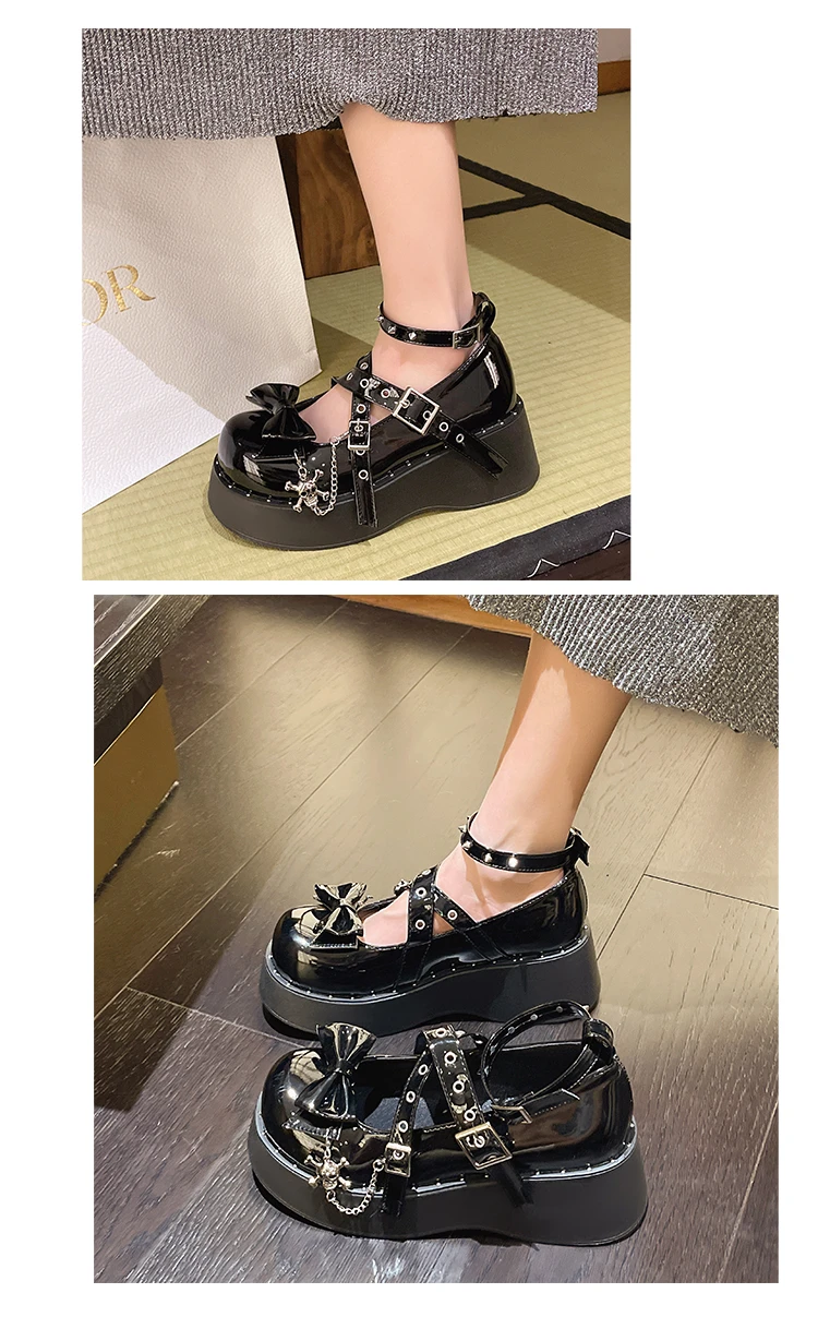 Punk Goth Chunky Platform Pumps Women 2023 Autumn Bowtie Wedges Mary Jane Lolita Shoes Woman Heart Ankle Buckle Black Shoes