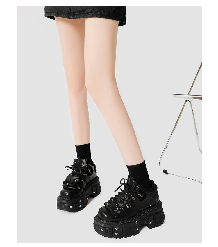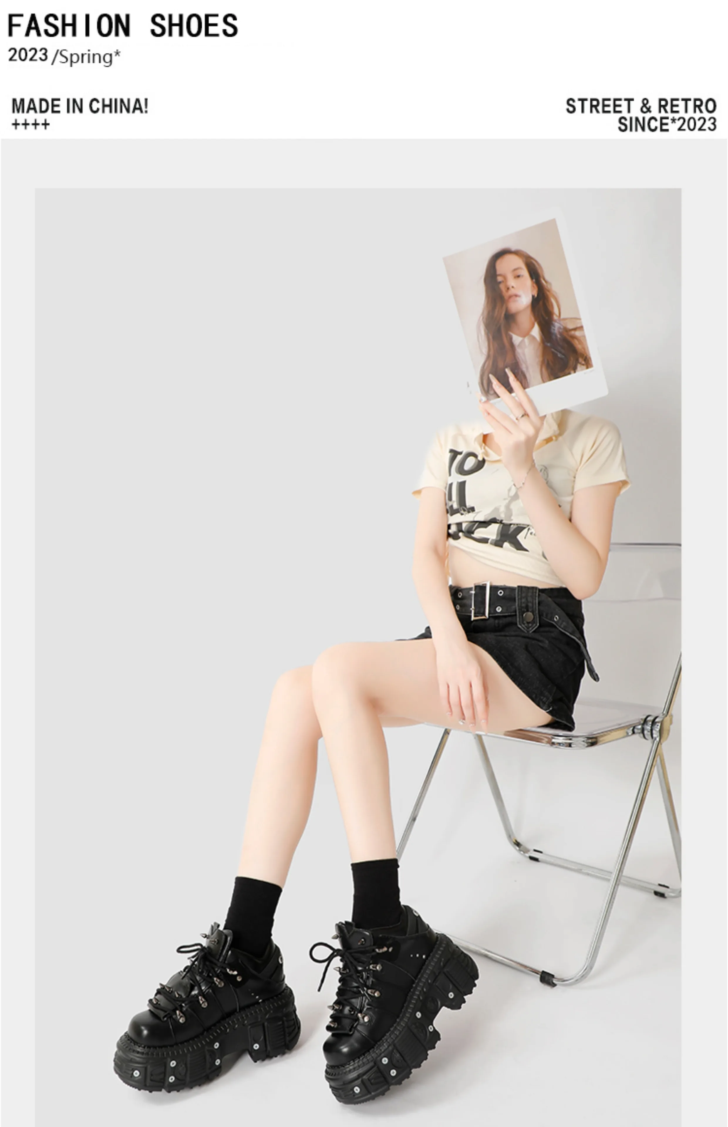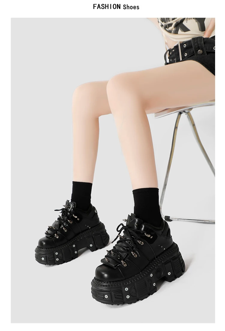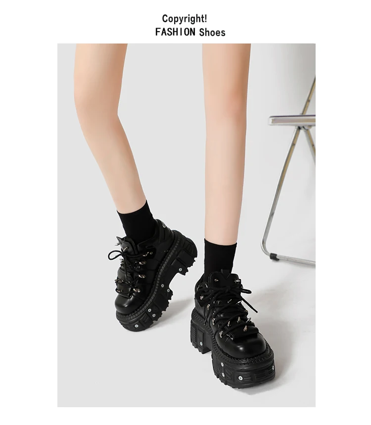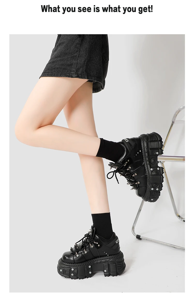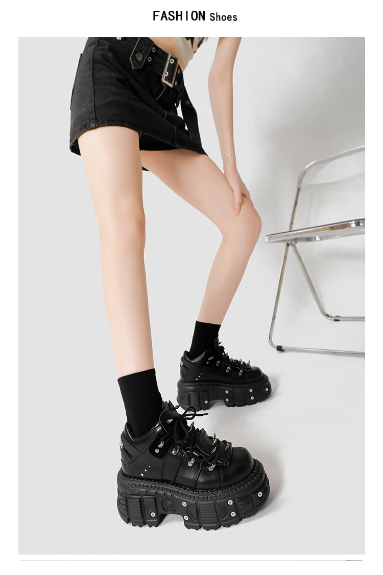 Punk Small Leather Women's Metal Gothic Dark Muffin Lolita Rivet Niche Y2g Hot Girl Platform Shoes