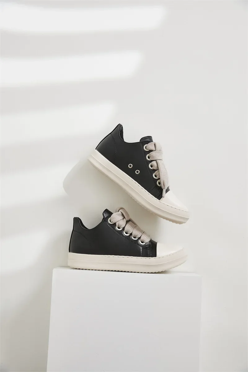 Rick Vintage Jumbo Lace Sneakers Low Top Woman Designer Shoes Men Casual Shoes Leather Women Flats Shoes NewTrainer Size 45 46