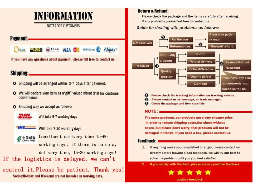 Hello, welcome to my shop, our shoes are high quality, The pictures on the website are our exclusive real 100%, without PS processing, our shoes are of high quality and hand-made, please feel free to order, thank you! if you like our products,please add a collection or Shopping Cart, if you need to pay tariff, we do not bear any tariff,please timely processing of tariff problem. we also have many other products, if you want, please contact me, I wish you a happy shopping, thank you!