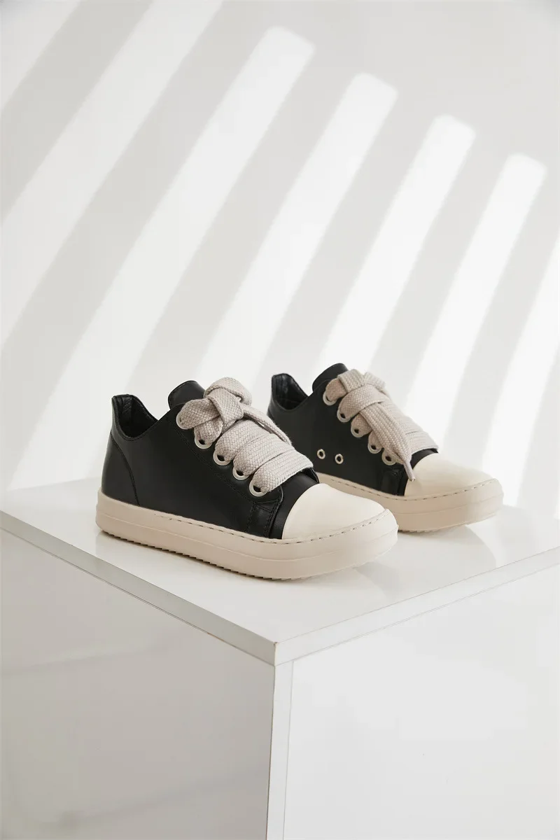 Rick Vintage Jumbo Lace Sneakers Low Top Woman Designer Shoes Men Casual Shoes Leather Women Flats Shoes NewTrainer Size 45 46