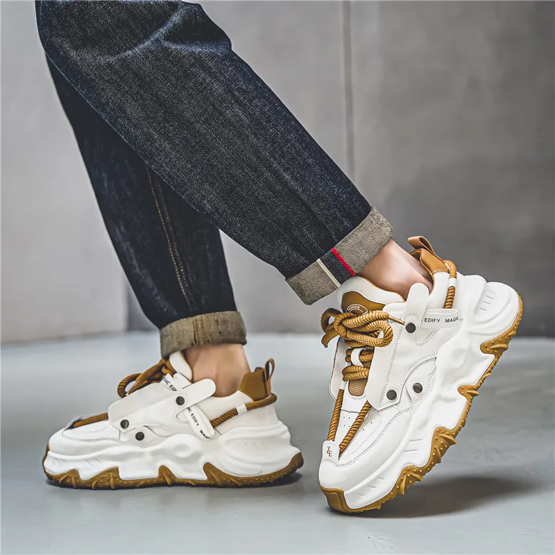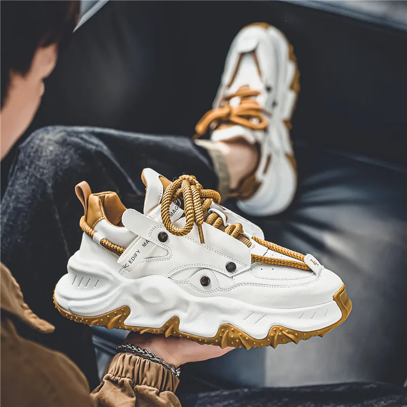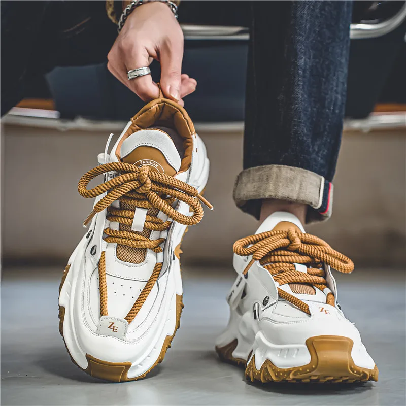 Seasonal New Niche Leather Breathable Retro Sports Board Shoes Hong Kong Style Work Clothes Outdoor Trendy Shoes for Men