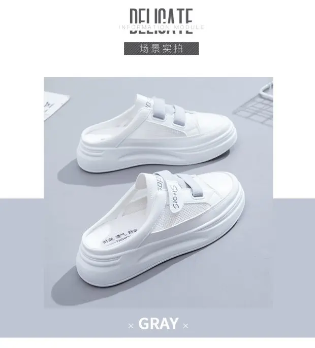 Shoes Woman Summer 2023 New In Casual Slip-on White Shoes Ladies Comfort Mesh Flat Platform Mules Footwear Tenis De Moda