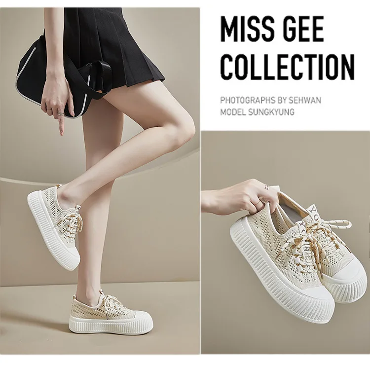 Shoes women 2024 new summer mesh surface breathable thin mesh shoes muffin thick sole all casual canvas board shoes