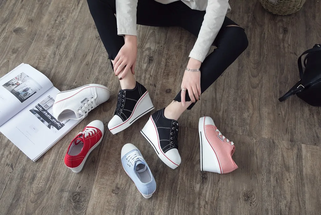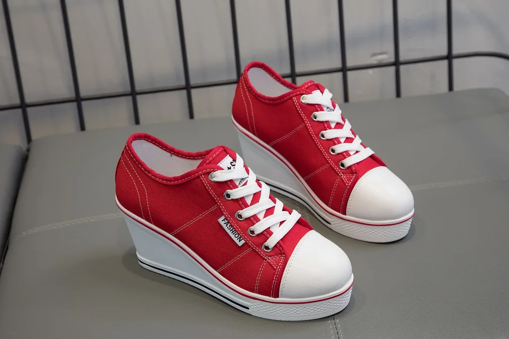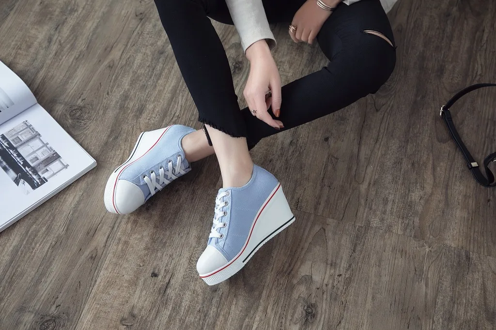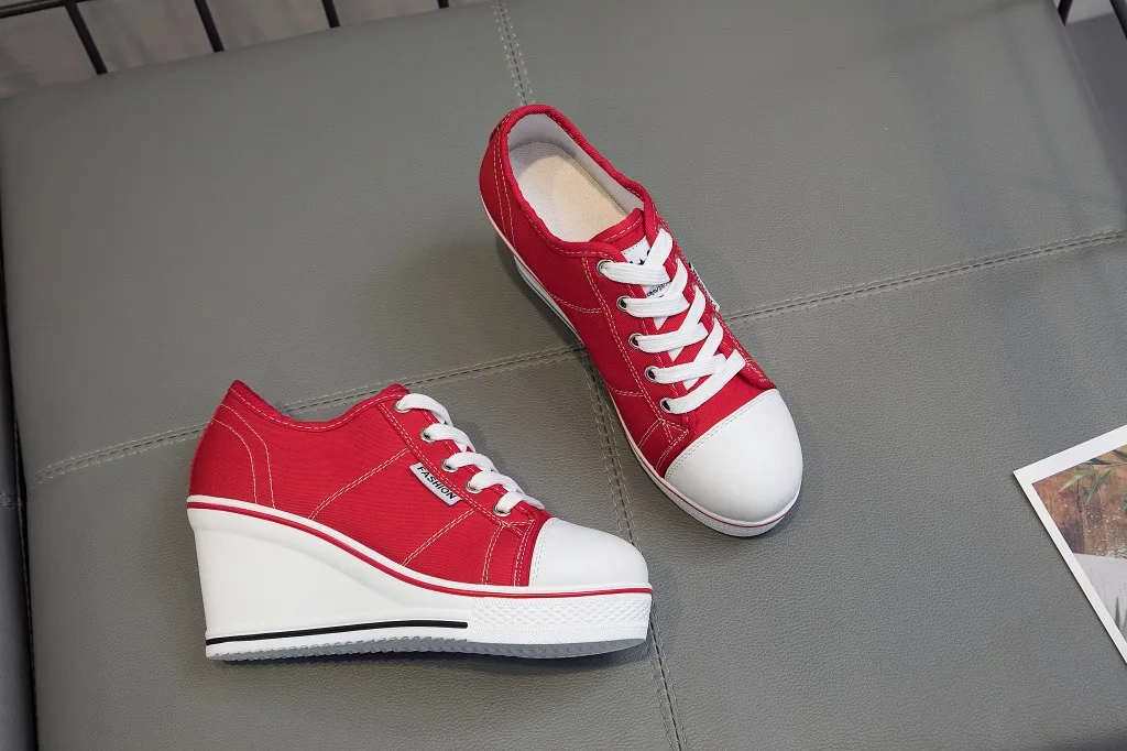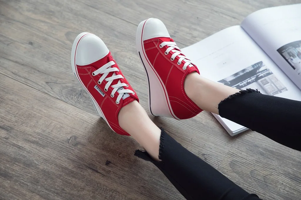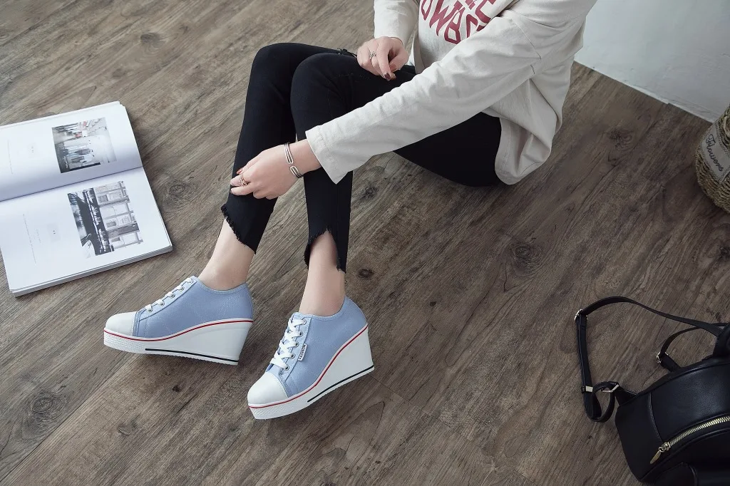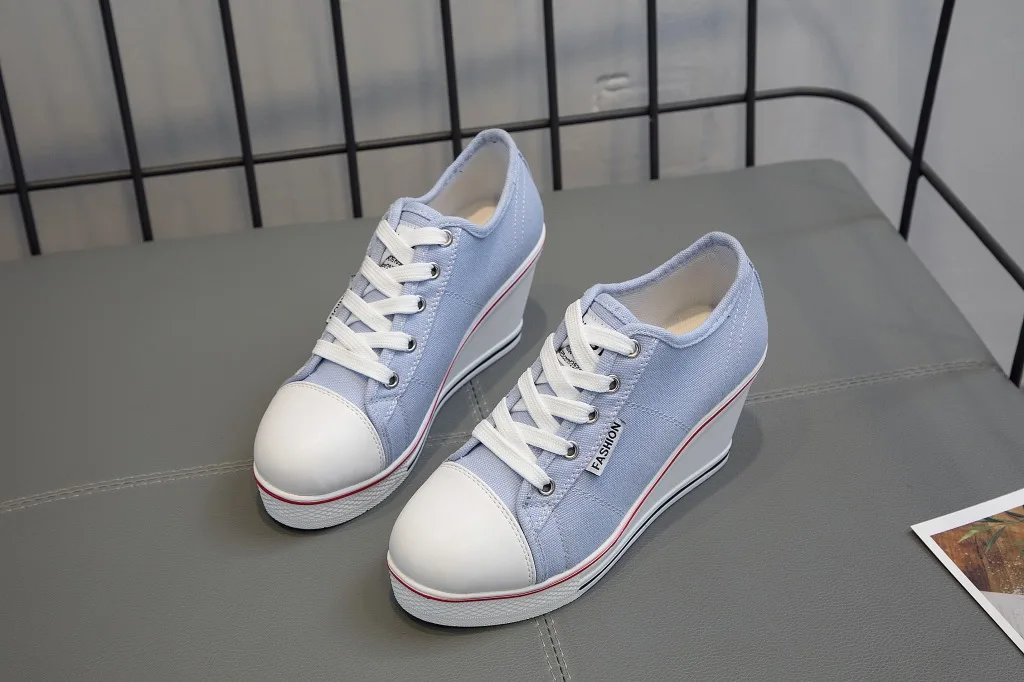 Shoes Women New Woman Wedge Canvas Vulcanize Shoes Platform Breathable Canvas Shoes Casual Students Candy Color Wedge Sneakers