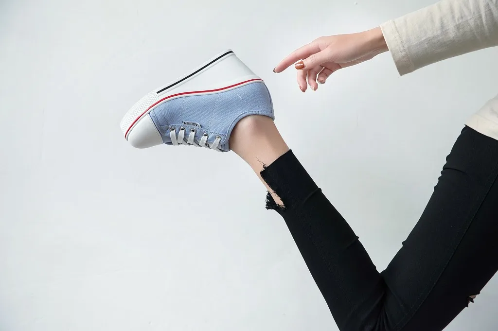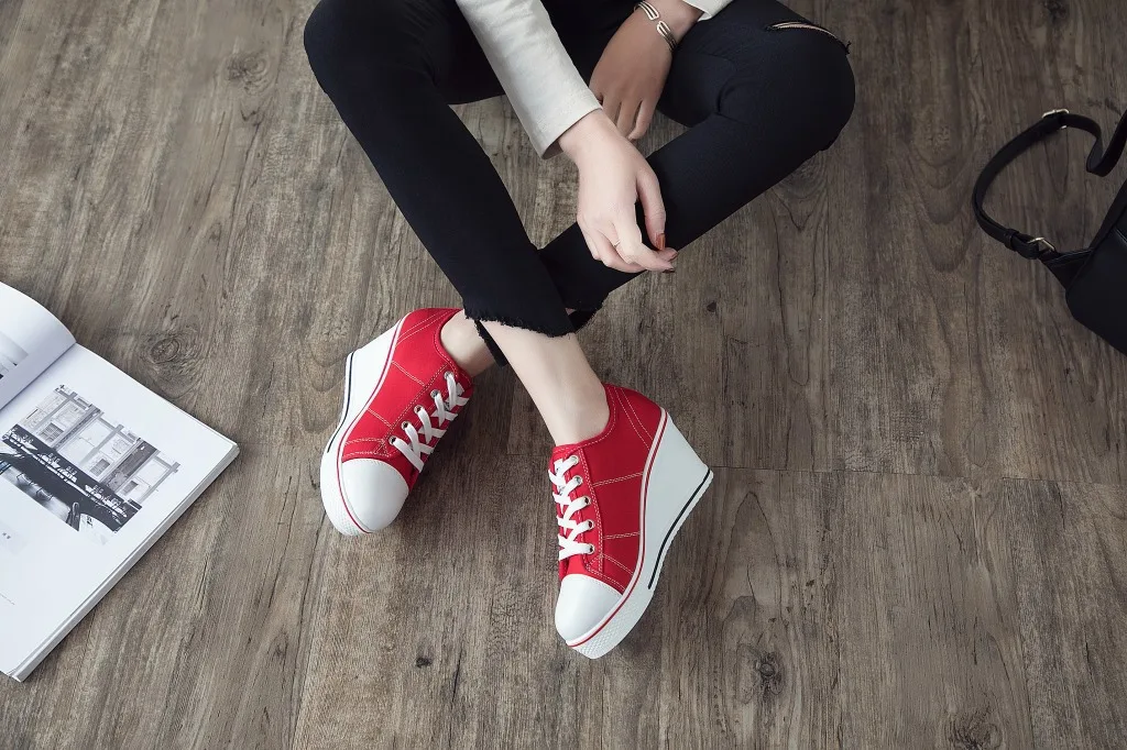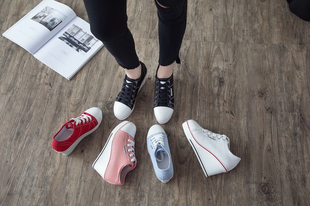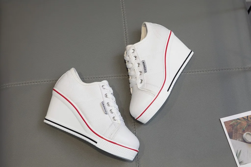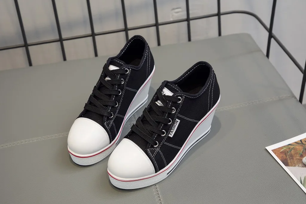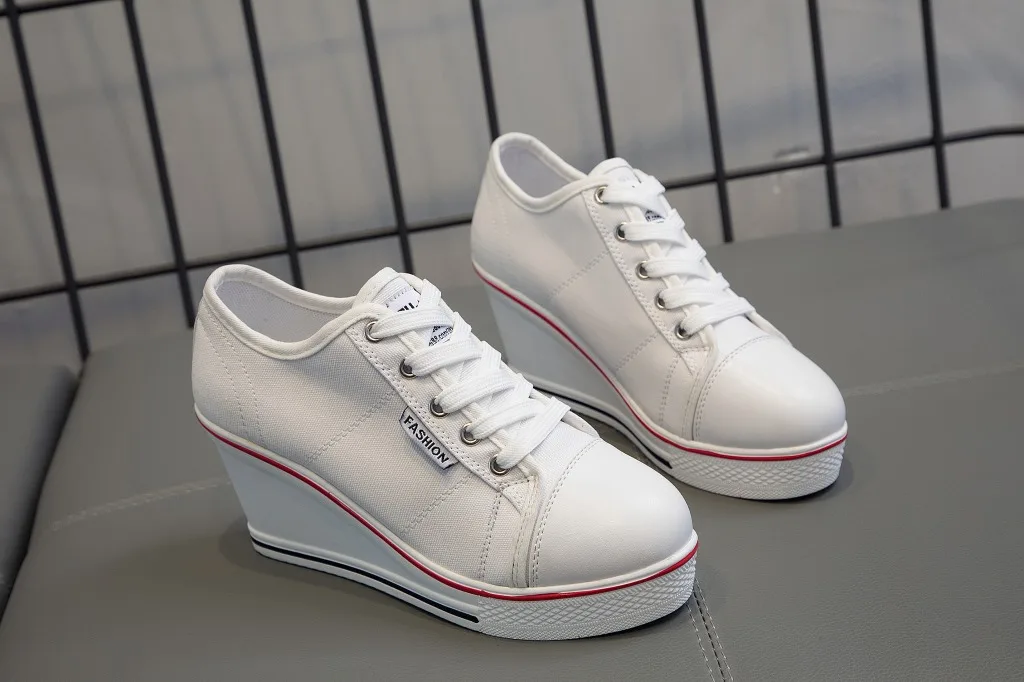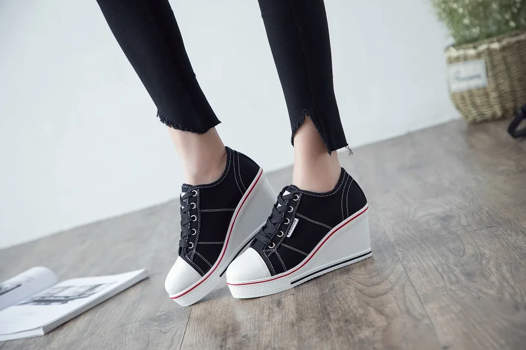 Shoes Women New Woman Wedge Canvas Vulcanize Shoes Platform Breathable Canvas Shoes Casual Students Candy Color Wedge Sneakers