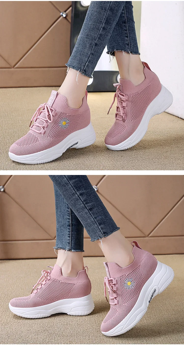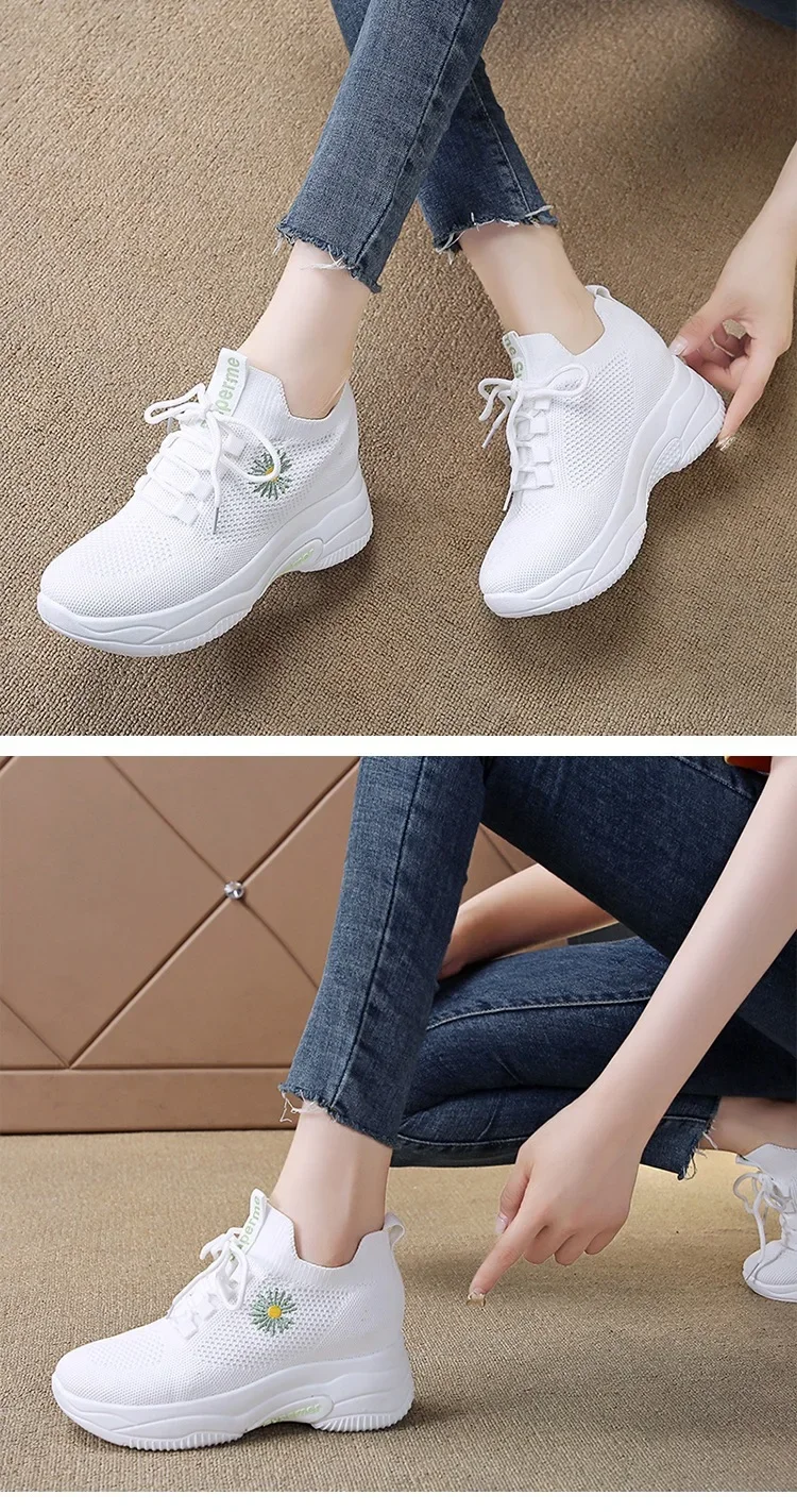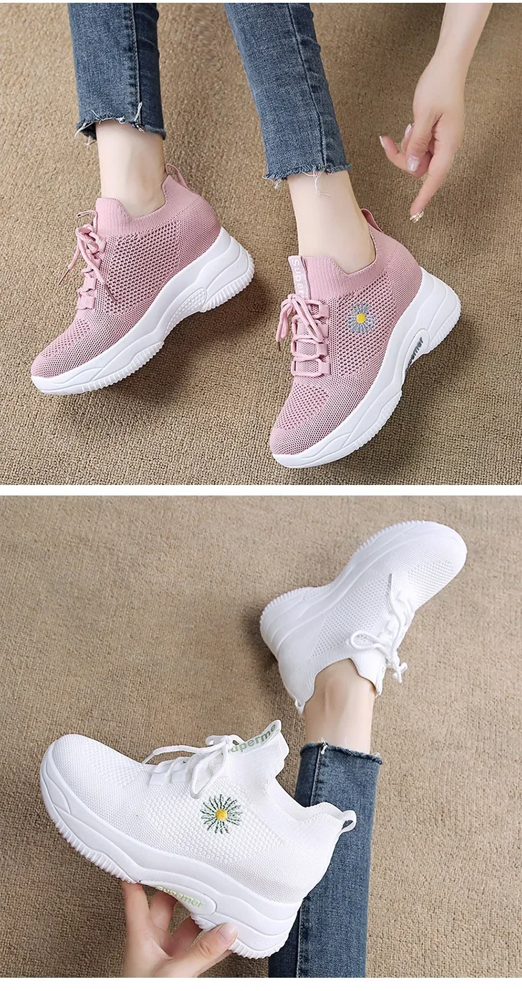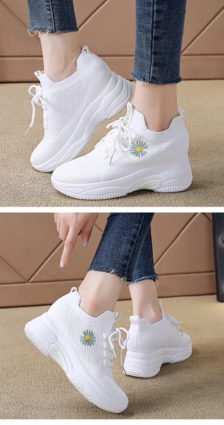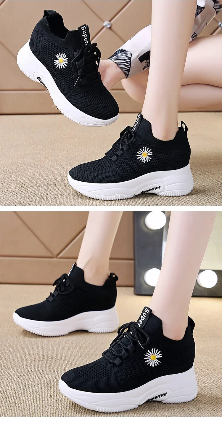 Small Chrysanthemum Pattern Sneakers Summer Autumn Low Heel Ladies Casual Wedges Platform Shoes Female Thick Bottom Trainers