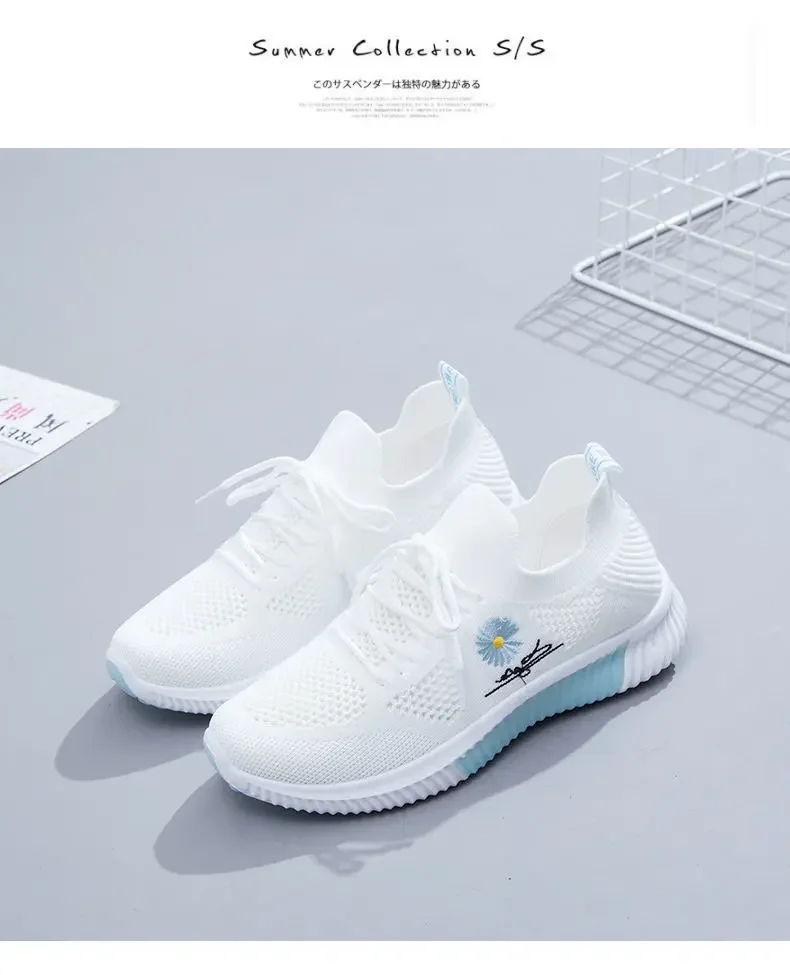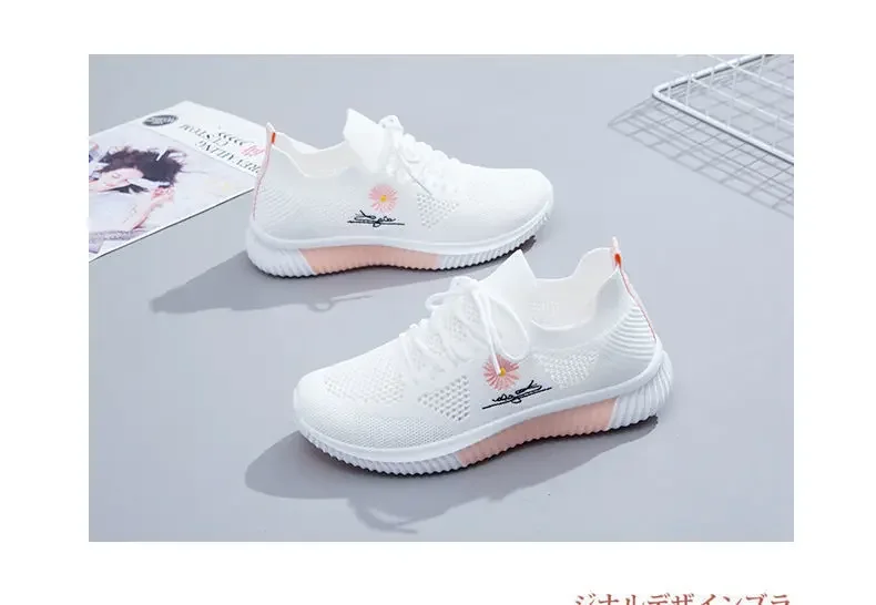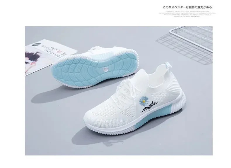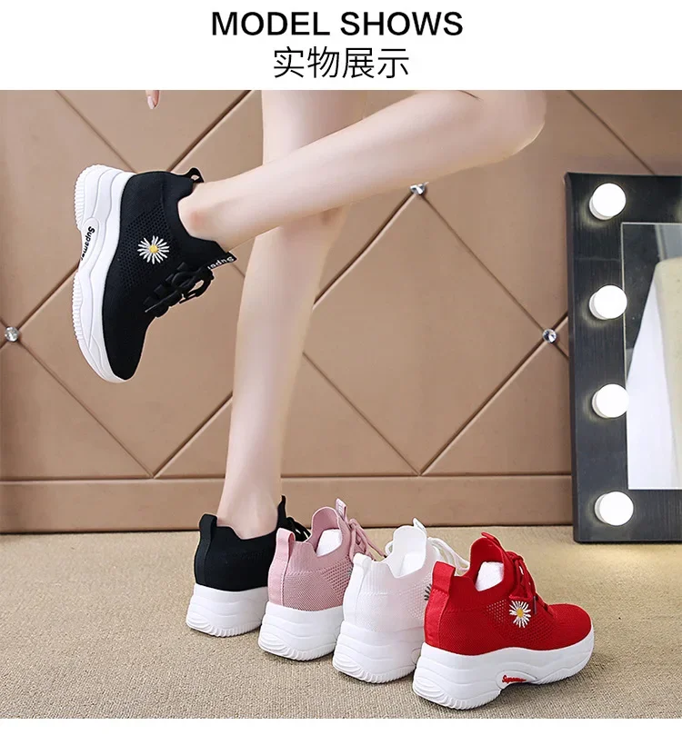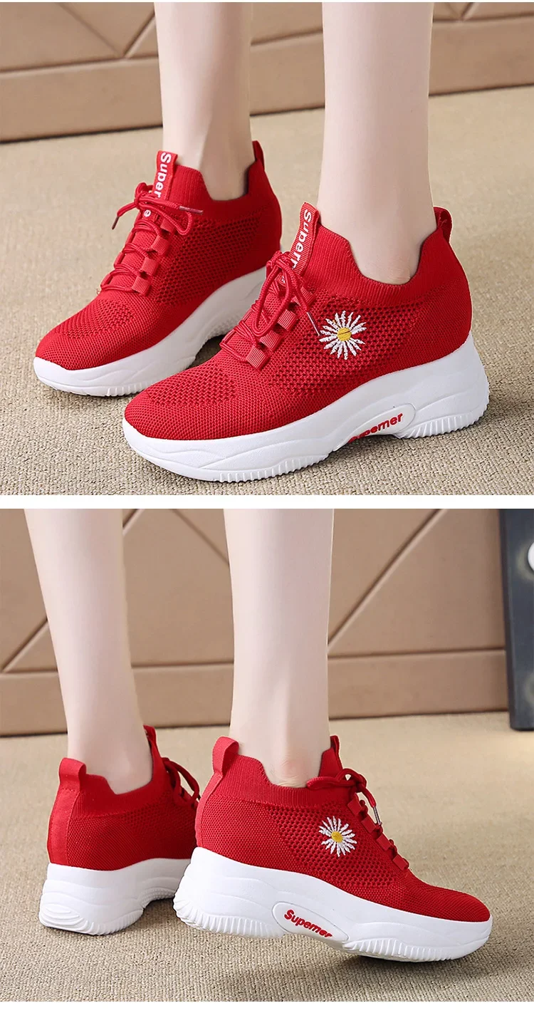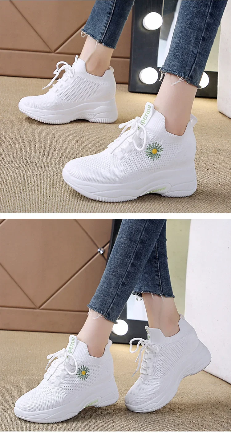 Small Chrysanthemum Pattern Sneakers Summer Autumn Low Heel Ladies Casual Wedges Platform Shoes Female Thick Bottom Trainers