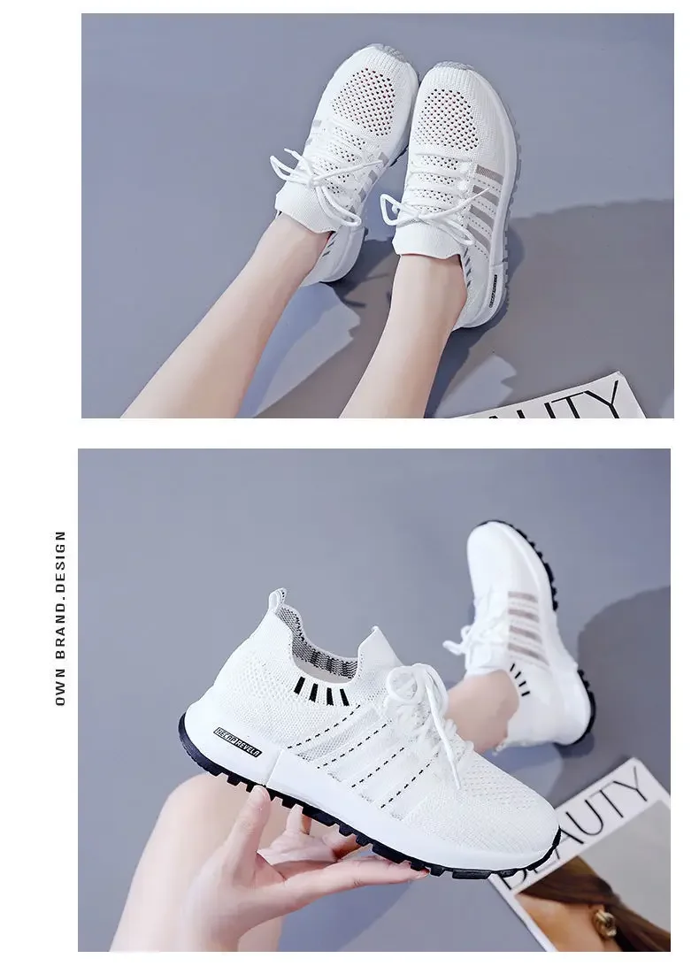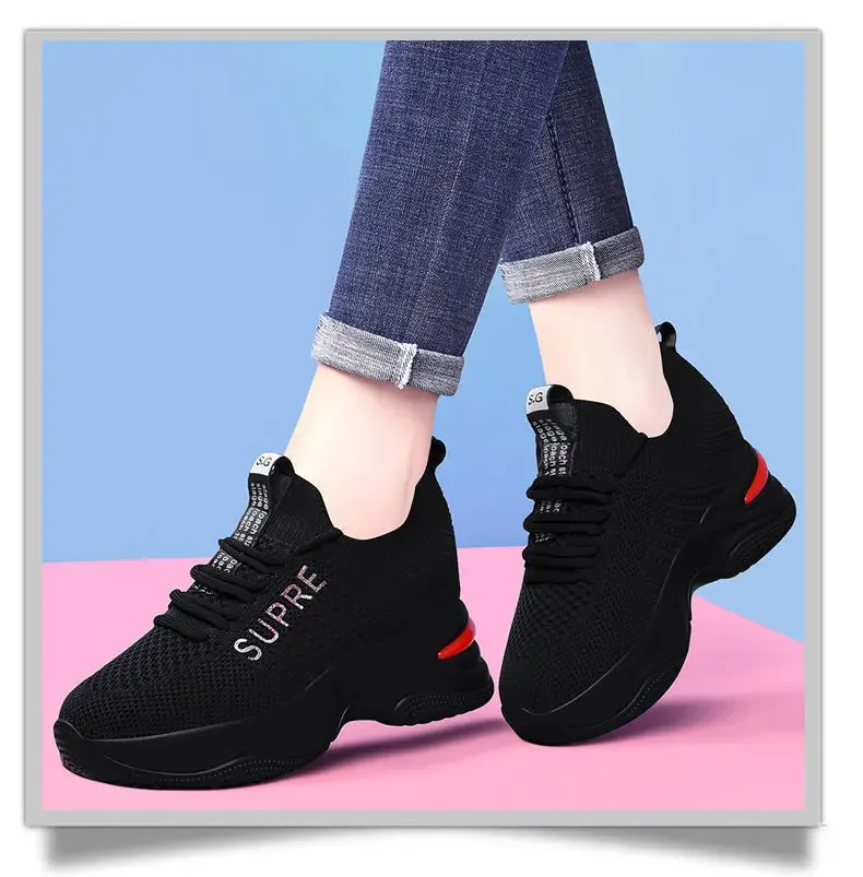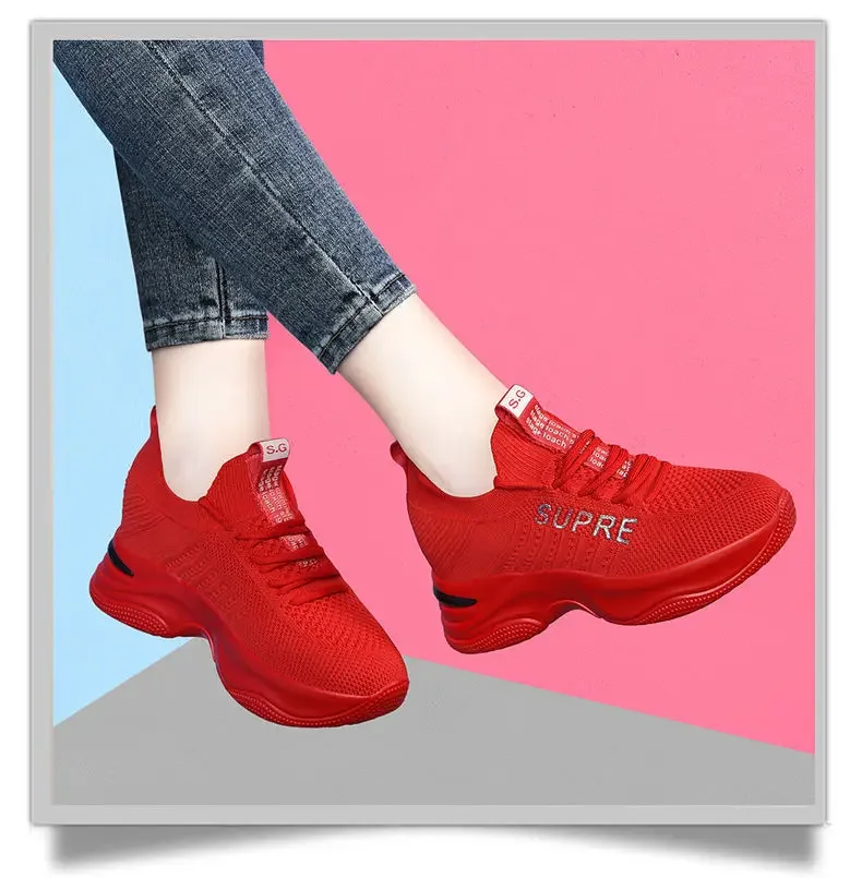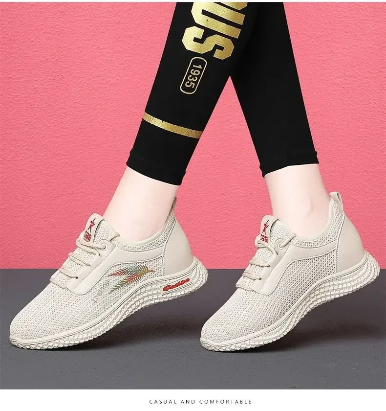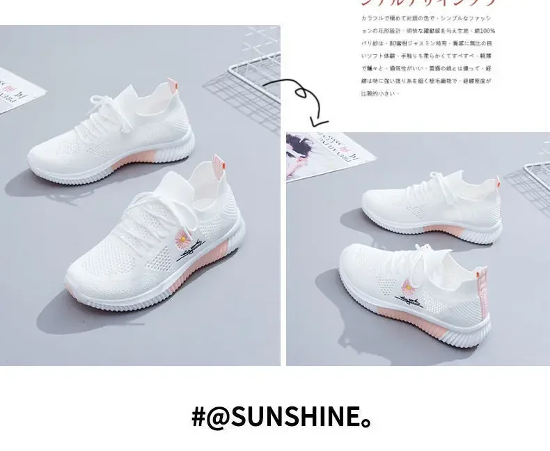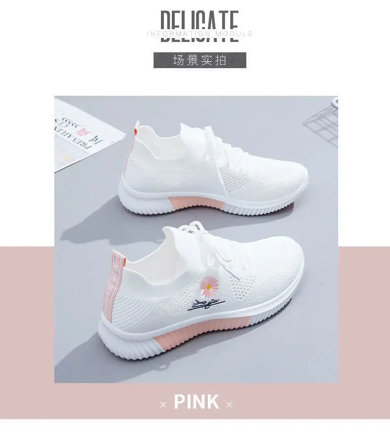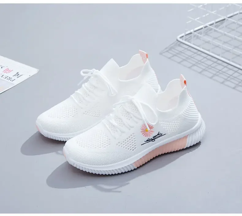 Small Chrysanthemum Pattern Sneakers Summer Autumn Low Heel Ladies Casual Wedges Platform Shoes Female Thick Bottom Trainers