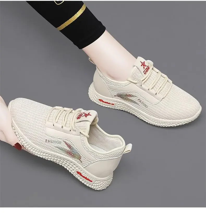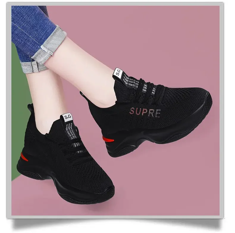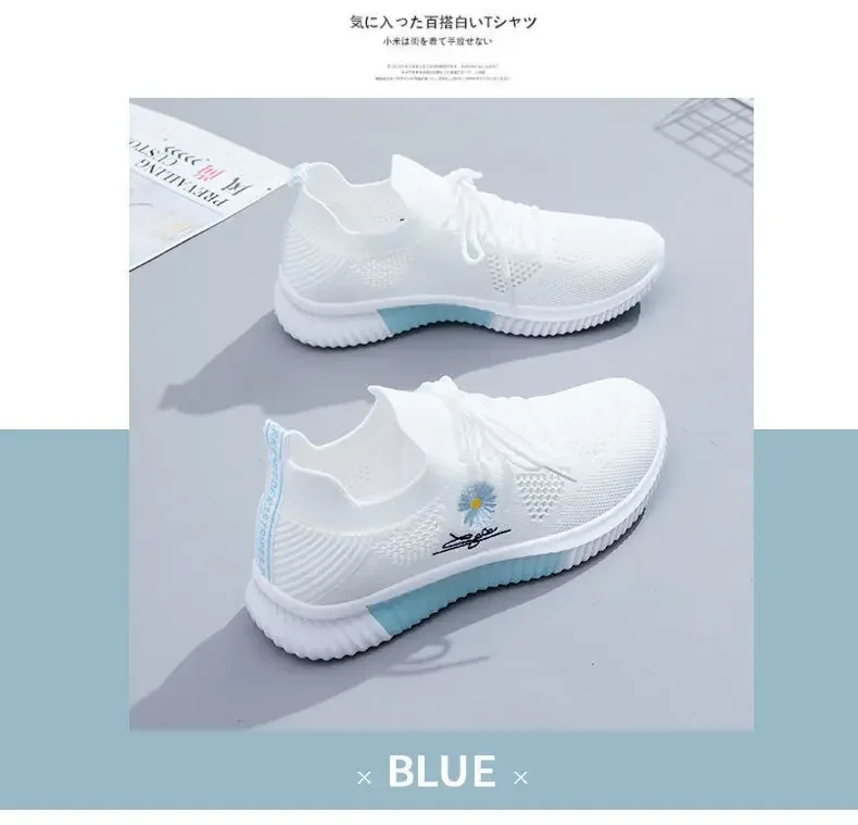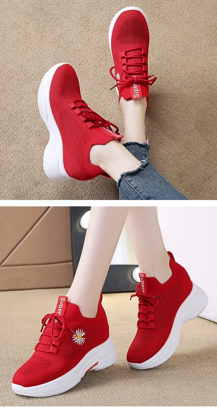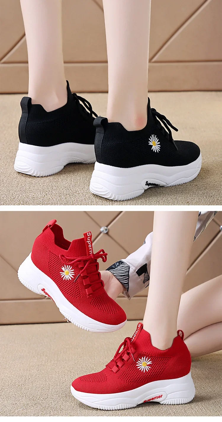 Small Chrysanthemum Pattern Sneakers Summer Autumn Low Heel Ladies Casual Wedges Platform Shoes Female Thick Bottom Trainers