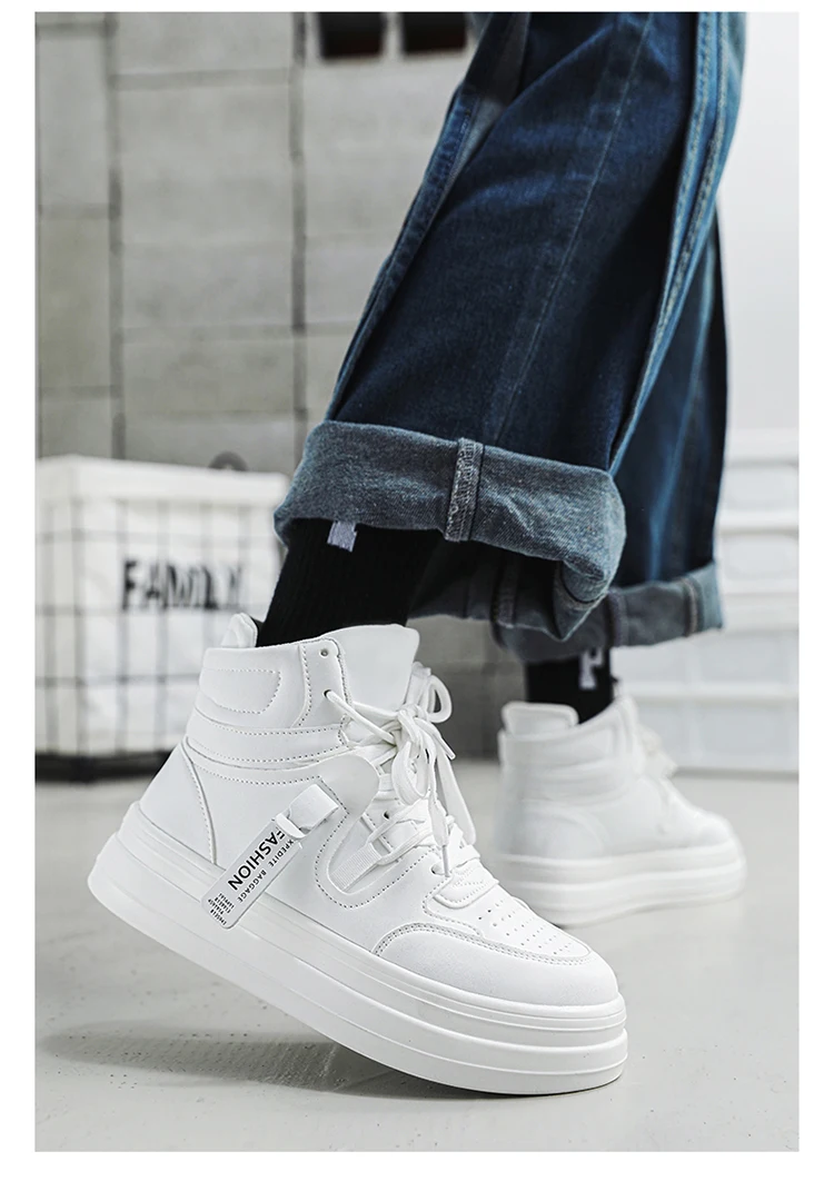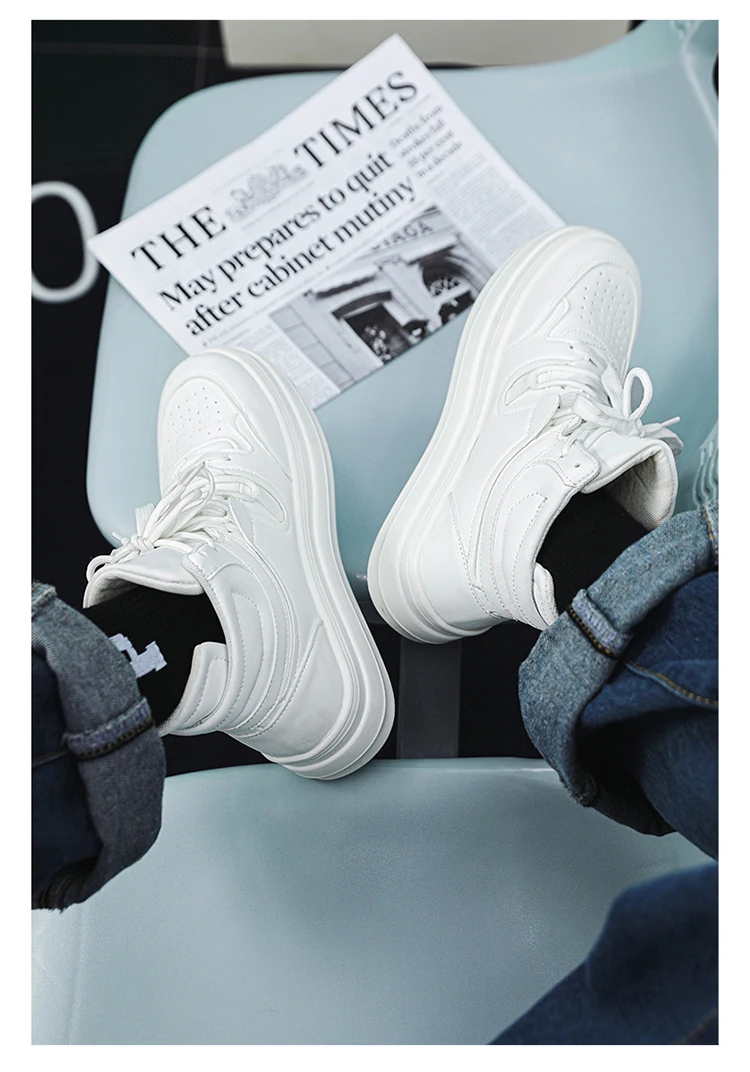 Sneaker Casual Men Designer White Running Shoes Fashion Microfiber Leather Breathable Increased Internal Platform Board Shoes