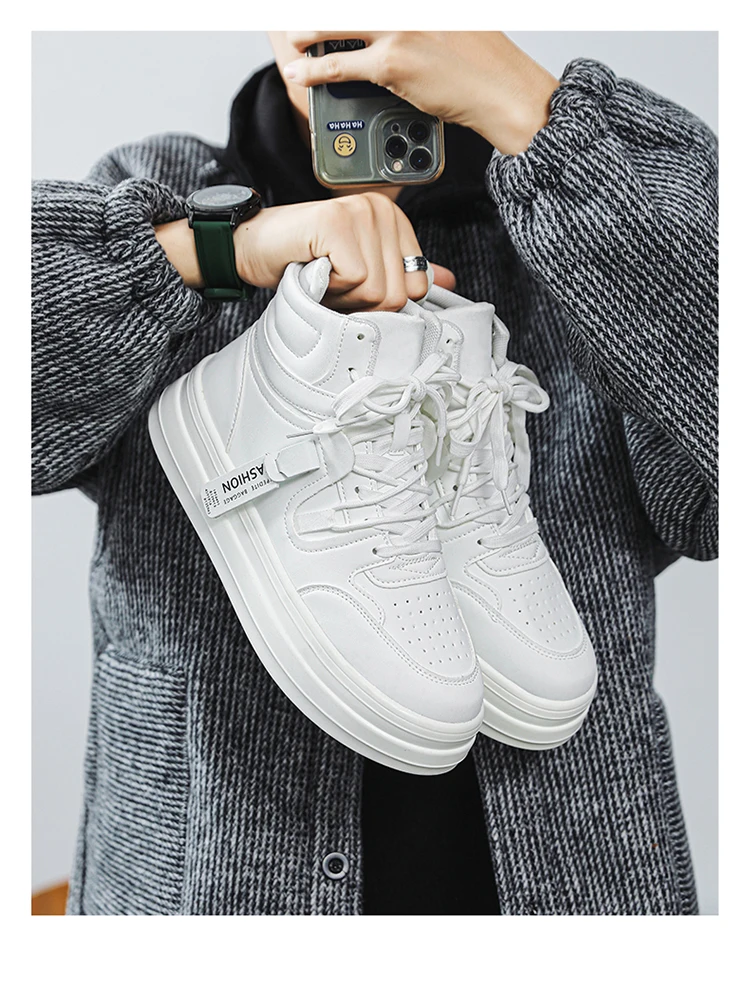 Sneaker Casual Men Designer White Running Shoes Fashion Microfiber Leather Breathable Increased Internal Platform Board Shoes