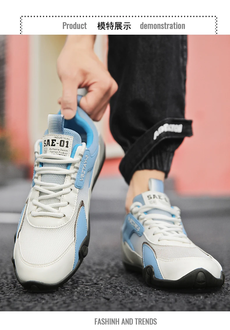 Sneakers for Men Fashion Mesh Sports Shoes Wear-resistant Casual Sneaker Breathable Comfortable Lightweight Thick Bottom Trend