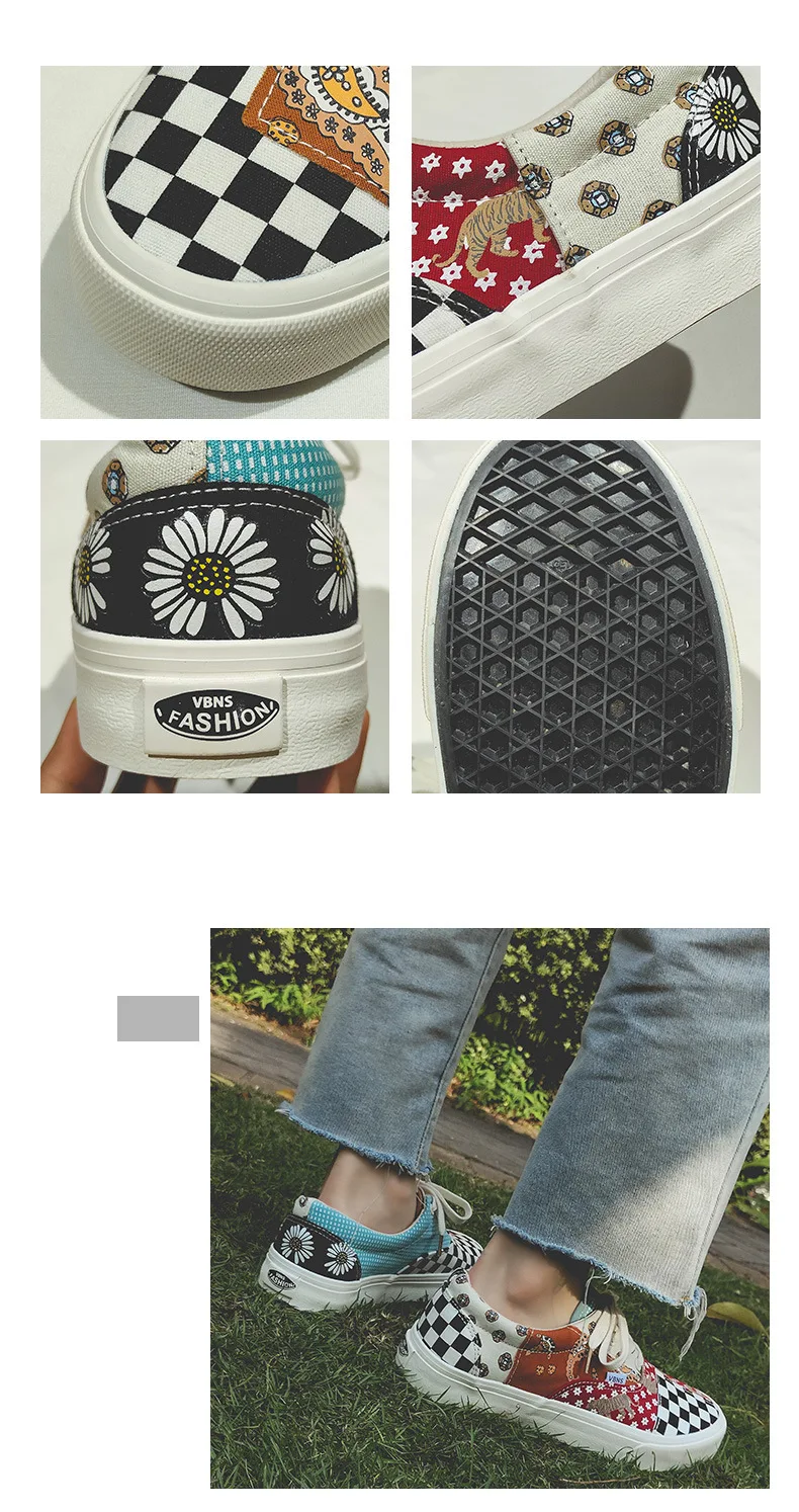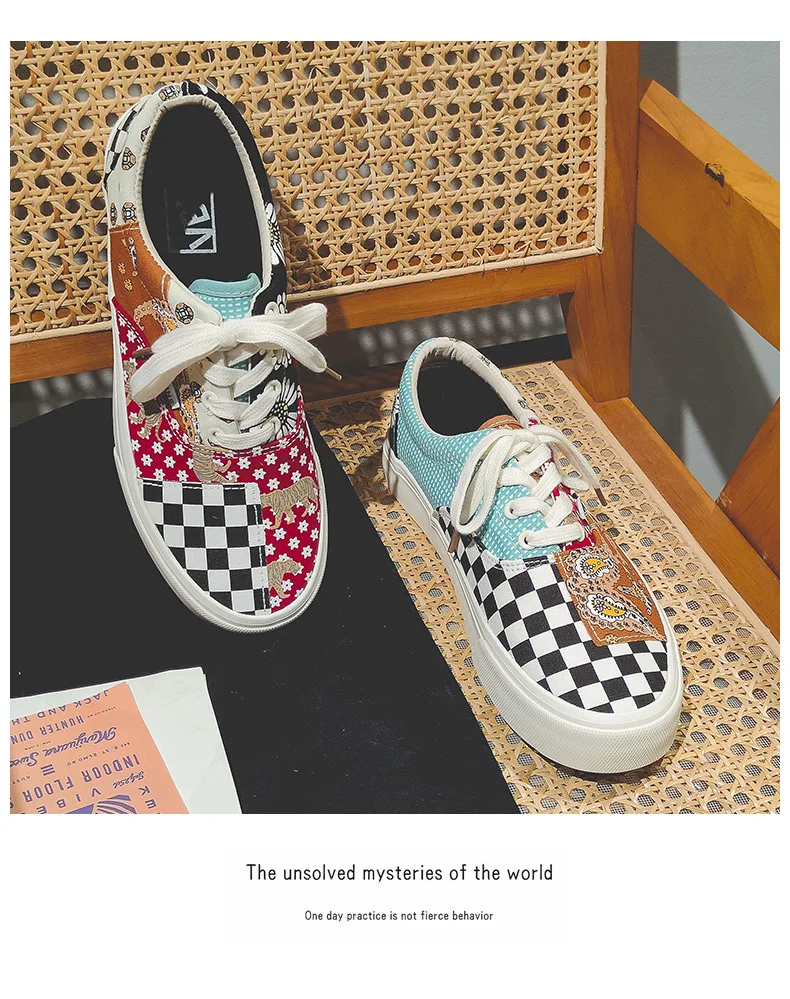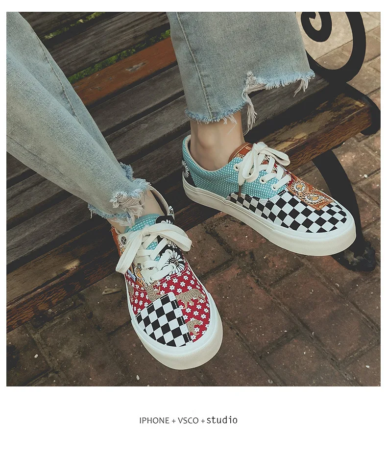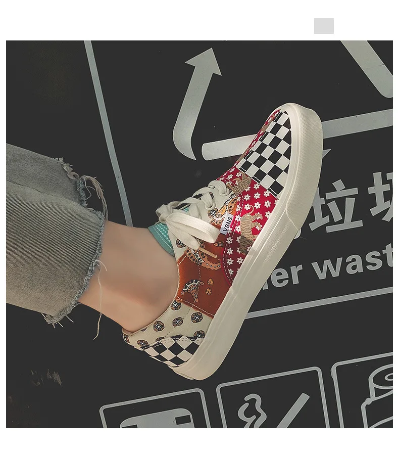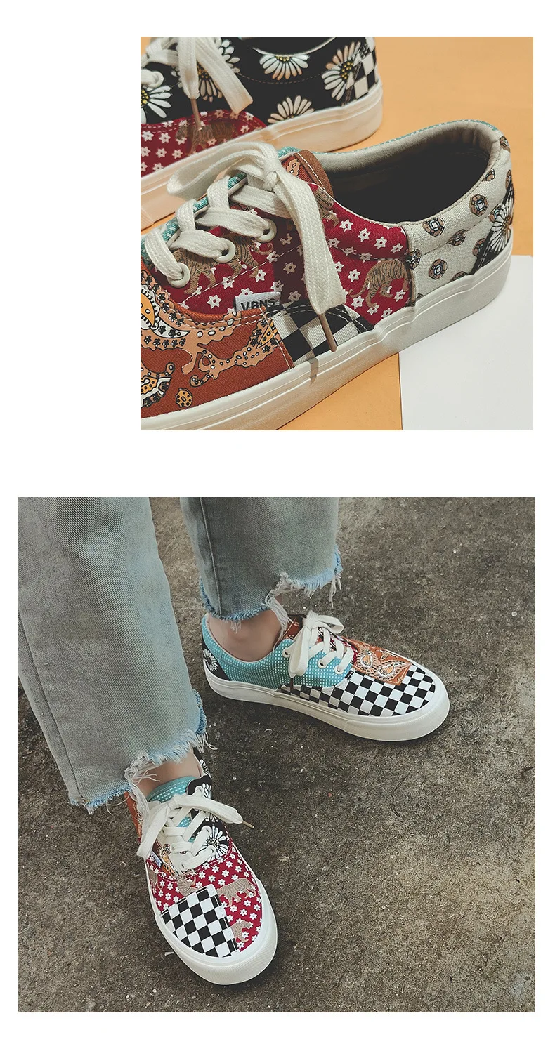 Sneakers Women's Canvas Plaid Mixed Colors Casual Shoes Flat Couple Casual Sneakers Low-cut Men and Woman Shoes Tennis Female