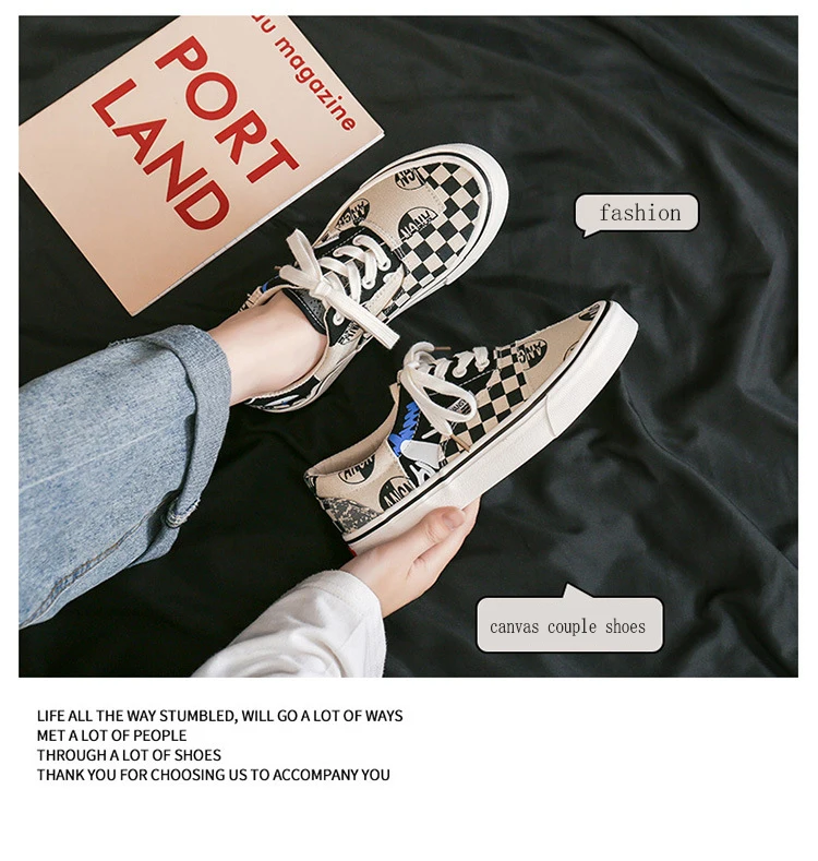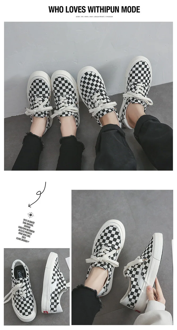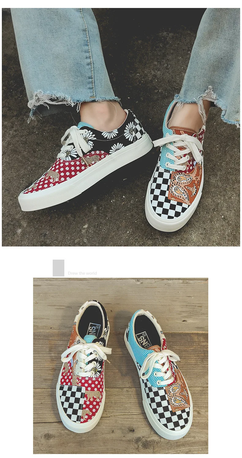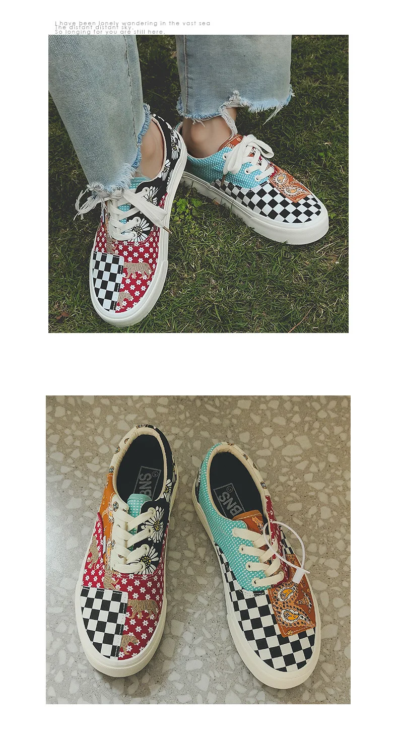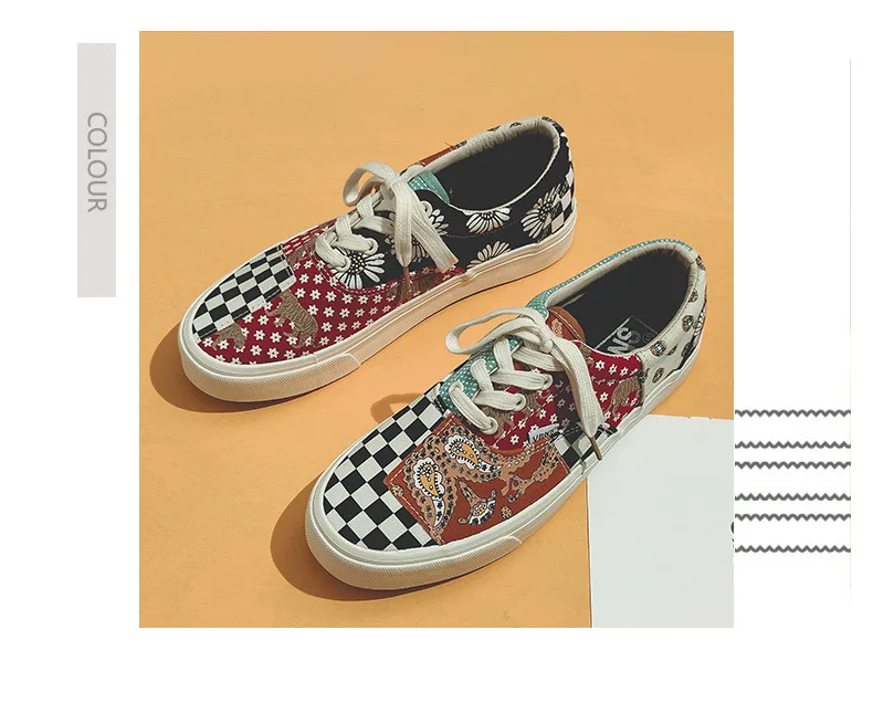 Sneakers Women's Canvas Plaid Mixed Colors Casual Shoes Flat Couple Casual Sneakers Low-cut Men and Woman Shoes Tennis Female
