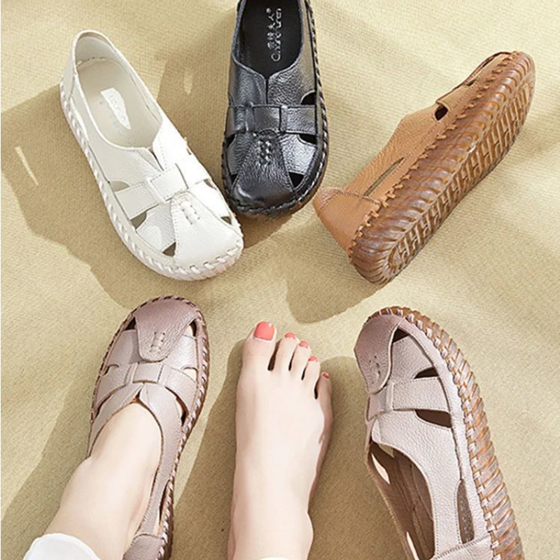 Soft Sole Mum Sandals Women Summer Flats Comfortable Non-slip Loafers Breathable Solid Colour Walking Shoes Sapatenis Feminino