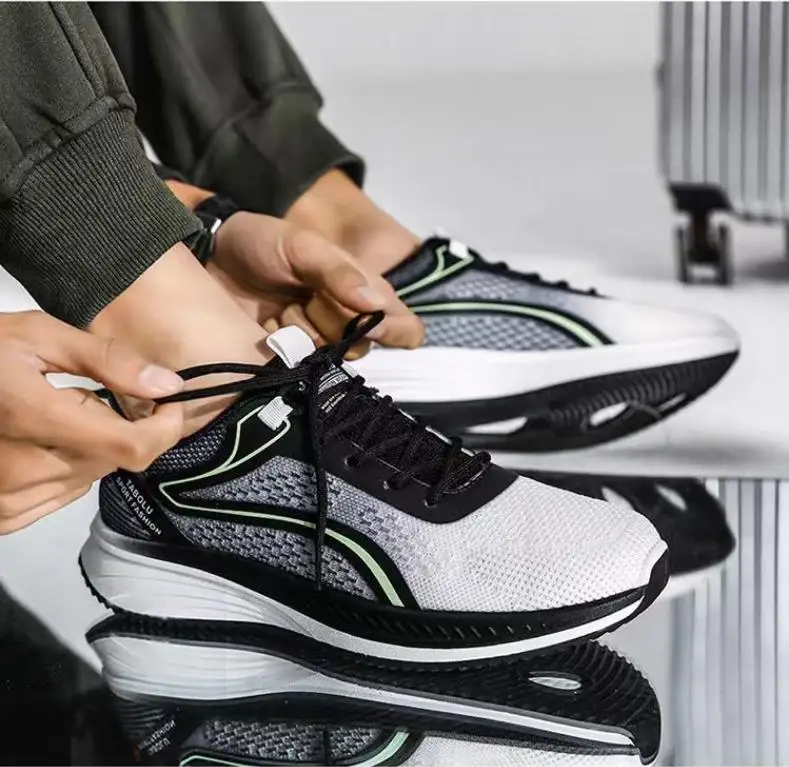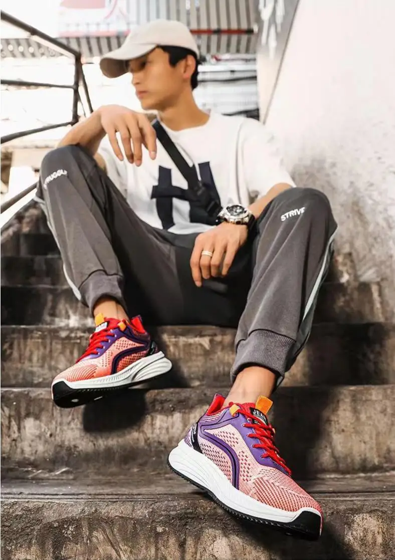Soft sole running shoes men spring Korean version trendy sports shoes flying woven breathable lace-up shoes men