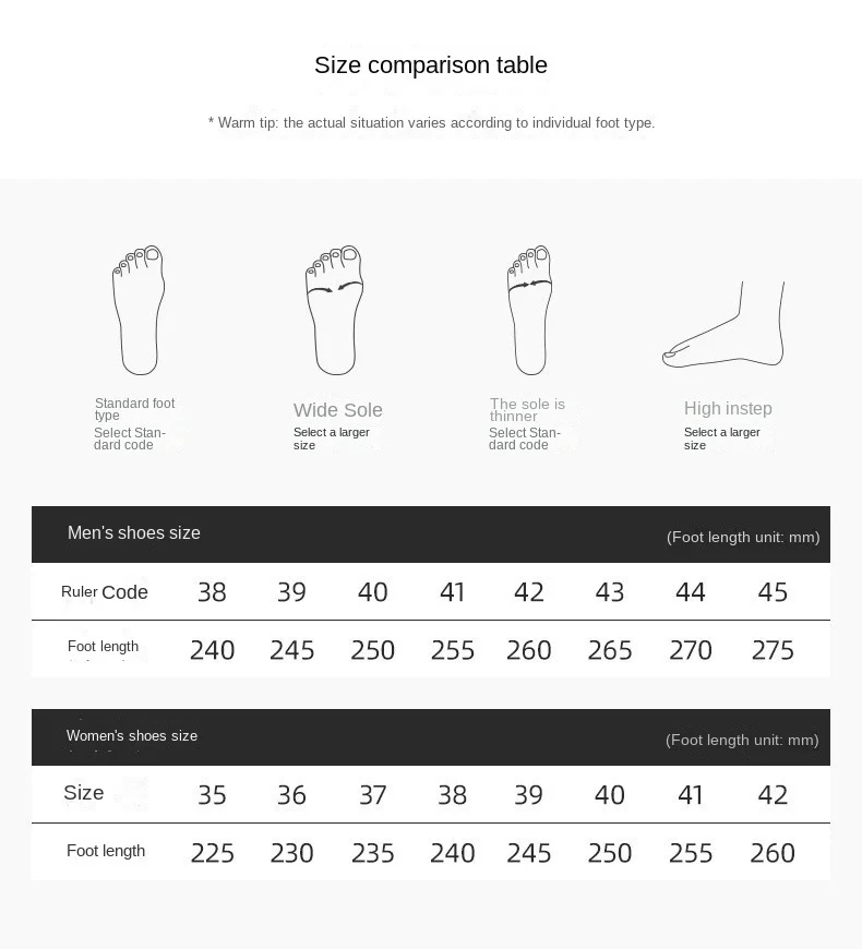 Dear friend, welcome to Tongxie Shoe Store. Please make sure to check the size when placing an order or communicate with us through online customer service! Dear, due to factors such as different batches, shooting angles, screen resolution, and lighting, there may be color differences in the images, but it will definitely not affect the quality and effect. Color issues cannot be returned or exchanged!