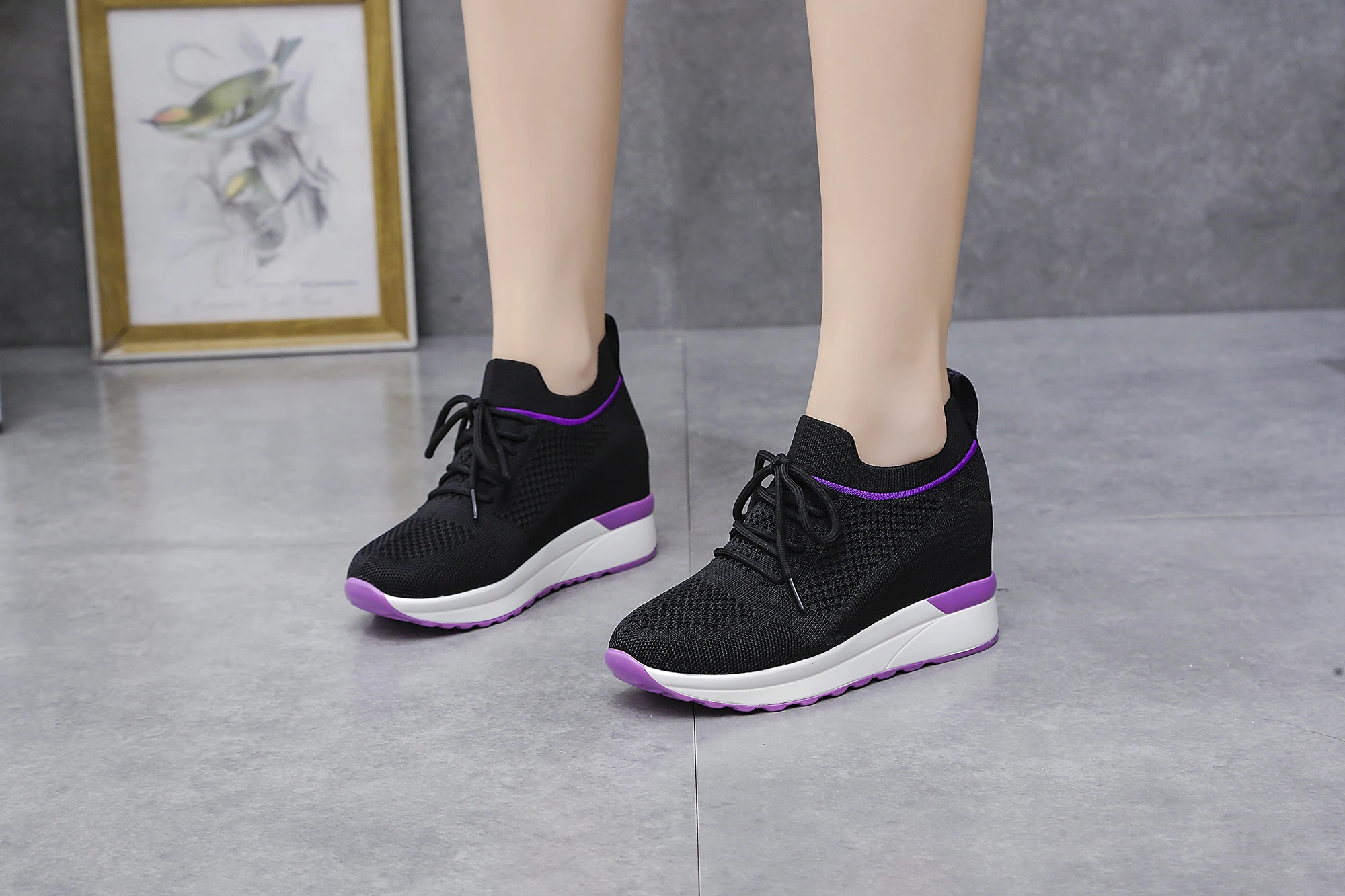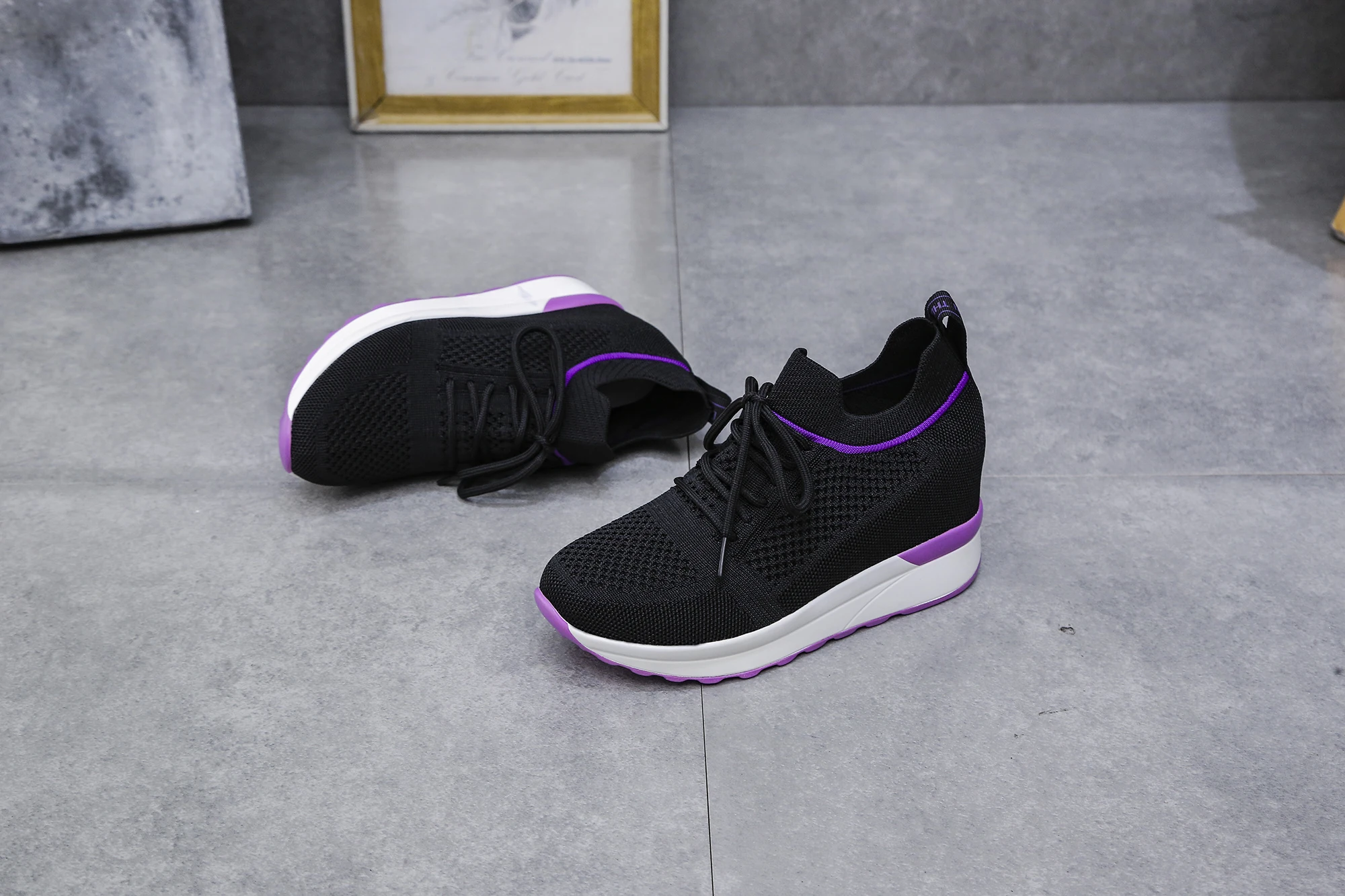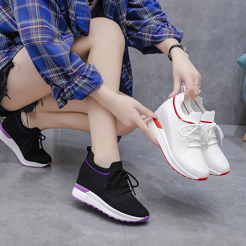 Spring and autumn 2022 Korean version thick sole inner heightening shoes lace up travel shoes casual sports shoes women's shoes