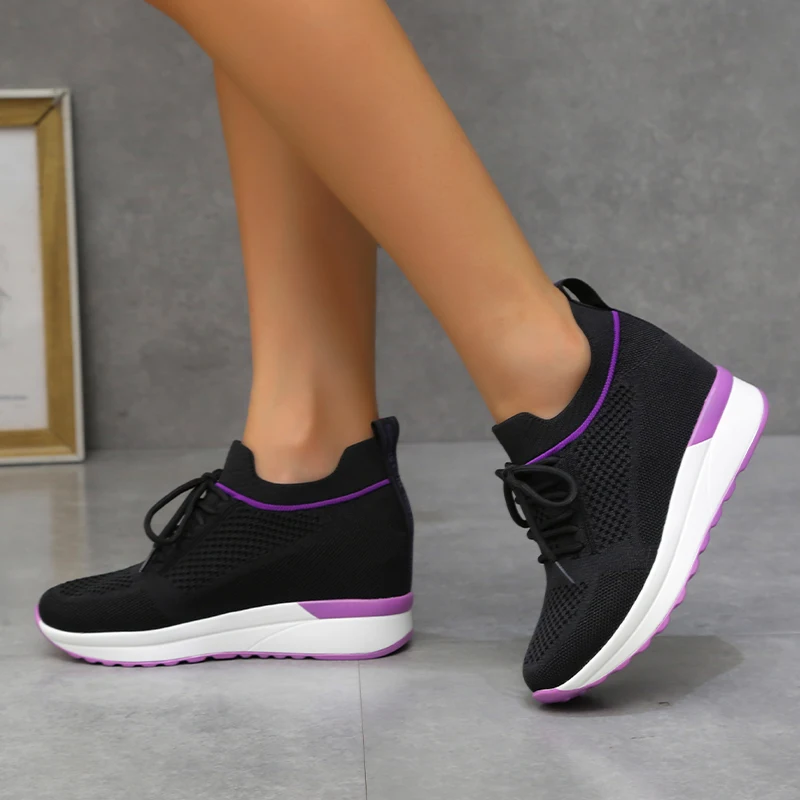 Spring and autumn 2022 Korean version thick sole inner heightening shoes lace up travel shoes casual sports shoes women's shoes