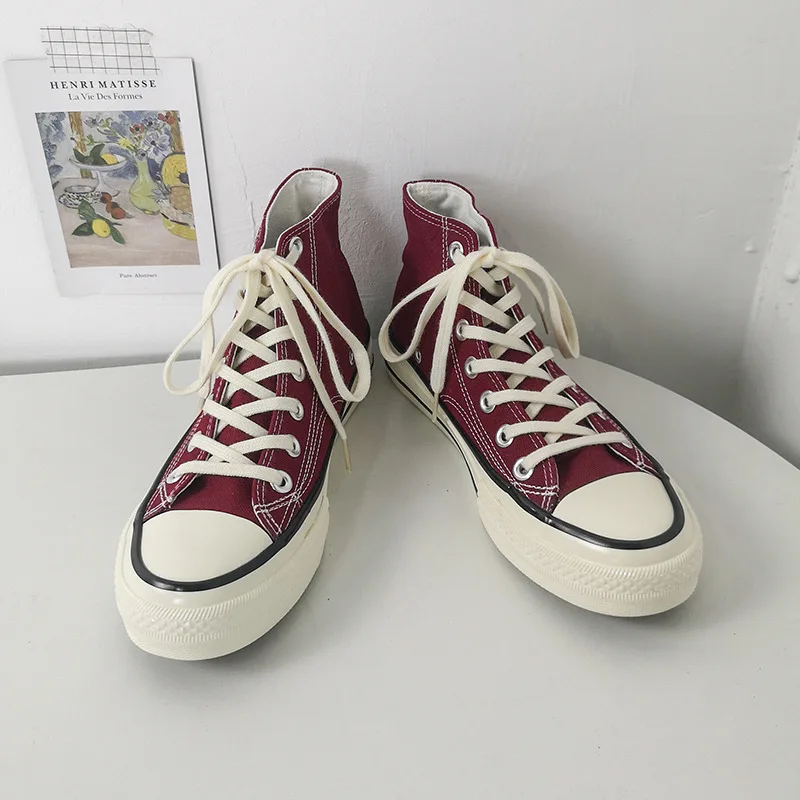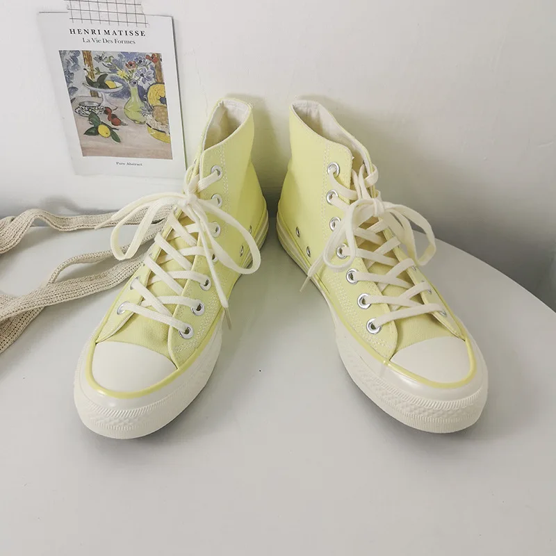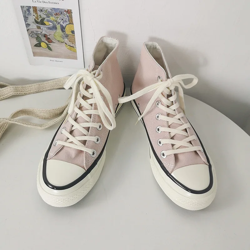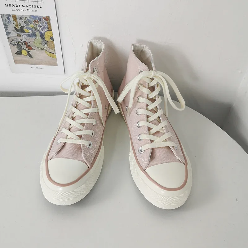 Spring Autumn Solid Women shoes Vulcanize Canvas Women Sneakers High Top New Fashion Cute Warm Casual 24 colors Solid Lace-up