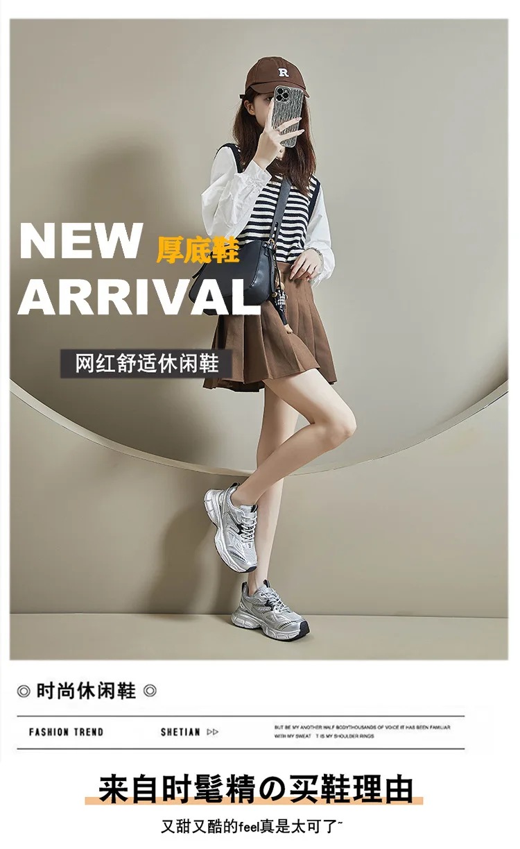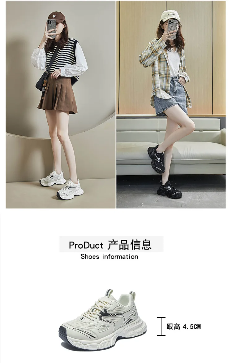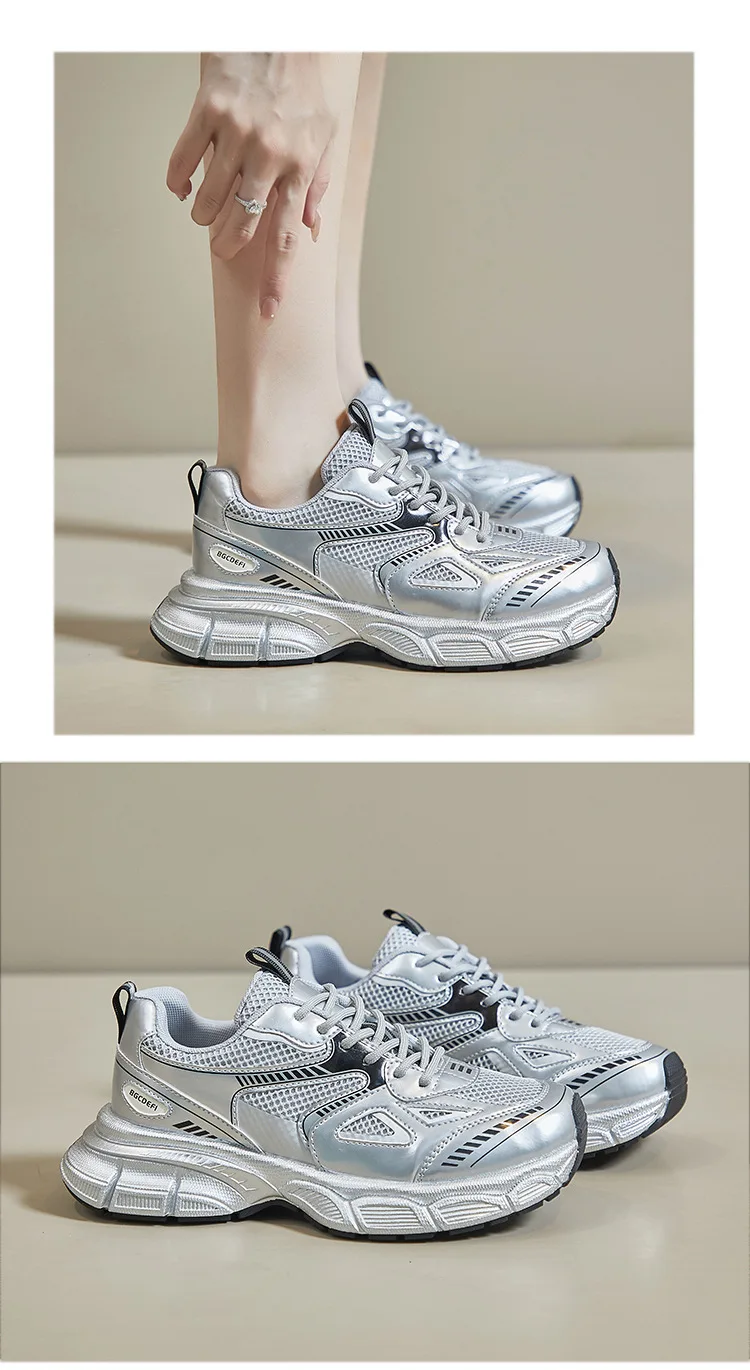 Spring new daddy shoes female students thick sole sports increase street pats running leisure sneakers C1431
