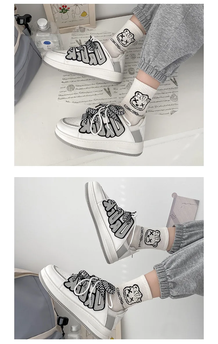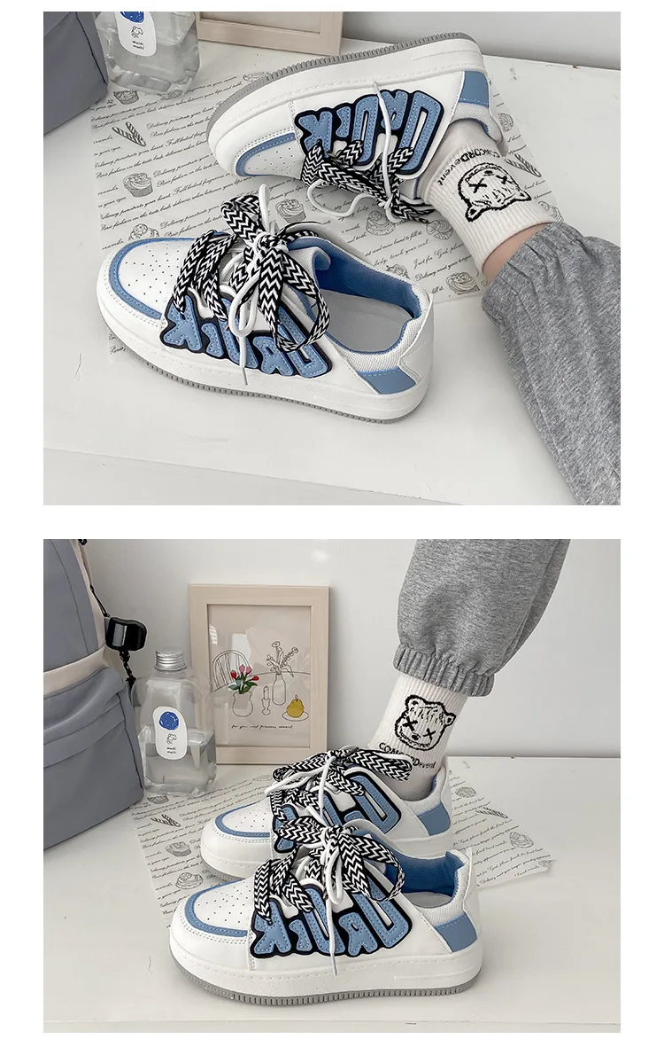 Spring New Women's Sneakers Haze Blue Love Breathable Students Casual Sports Shoes Women Platform Footwear Couple Borads Shoes